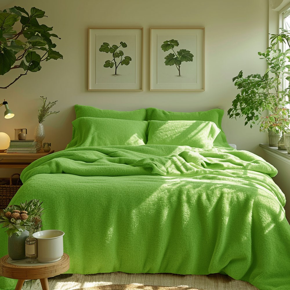 Miękka pościel frotte 155x220 cm w zielonym kolorze + 1x poszewka na poduszkę 80x80 cm