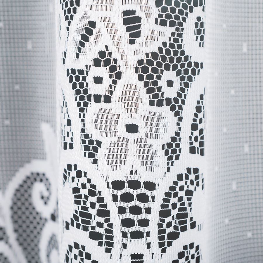 Wzorzysta, dekoracyjna firanka gotowa do powieszenia w rozmiarze 400x160 cm