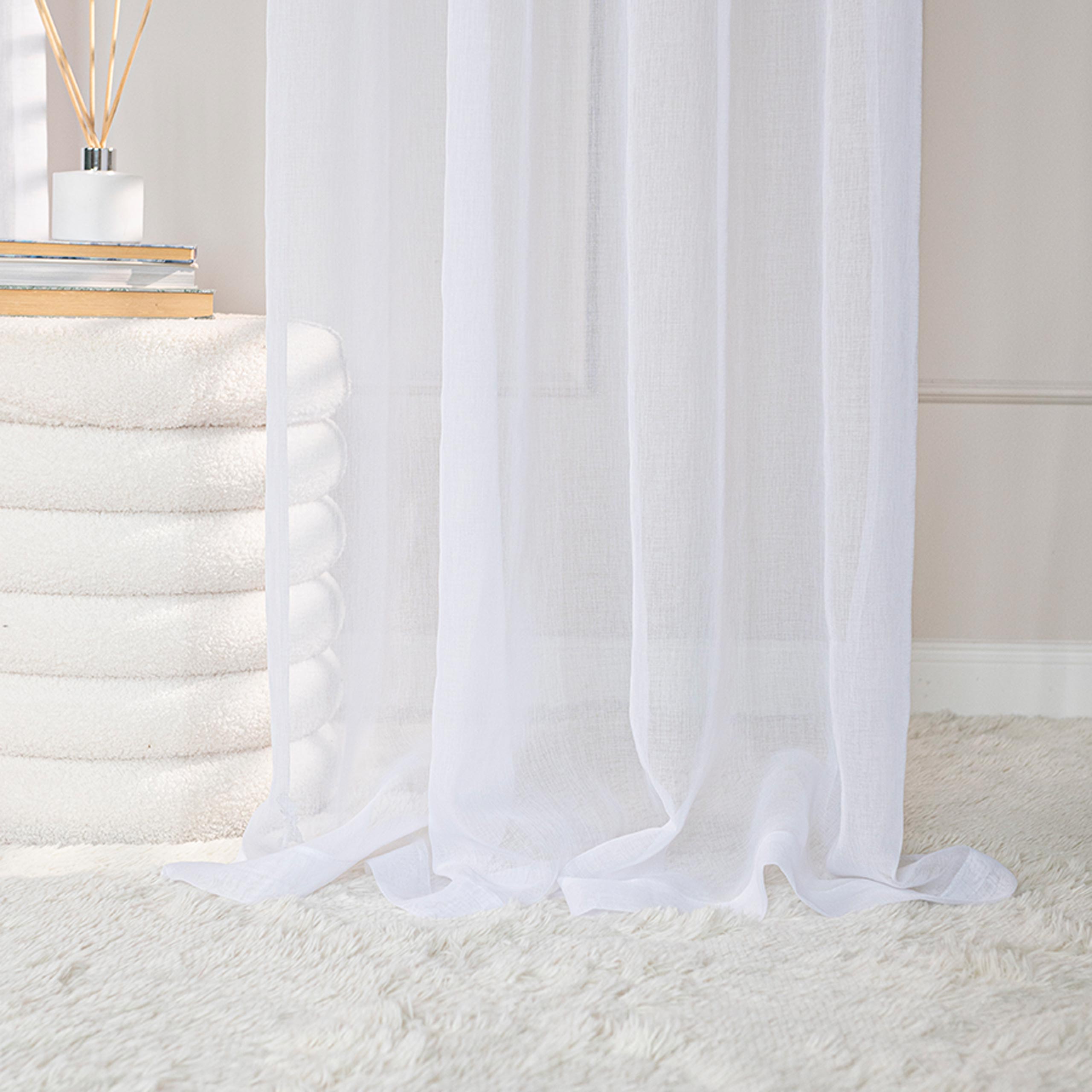 Gładka, jednokolorowa struktura bez wzoru sprawia, że firana doskonale wpisuje się w różne style aranżacyjne – od klasycznych po nowoczesne i minimalistyczne. Odcienie bieli podkreślają świeżość i optycznie powiększają przestrzeń.