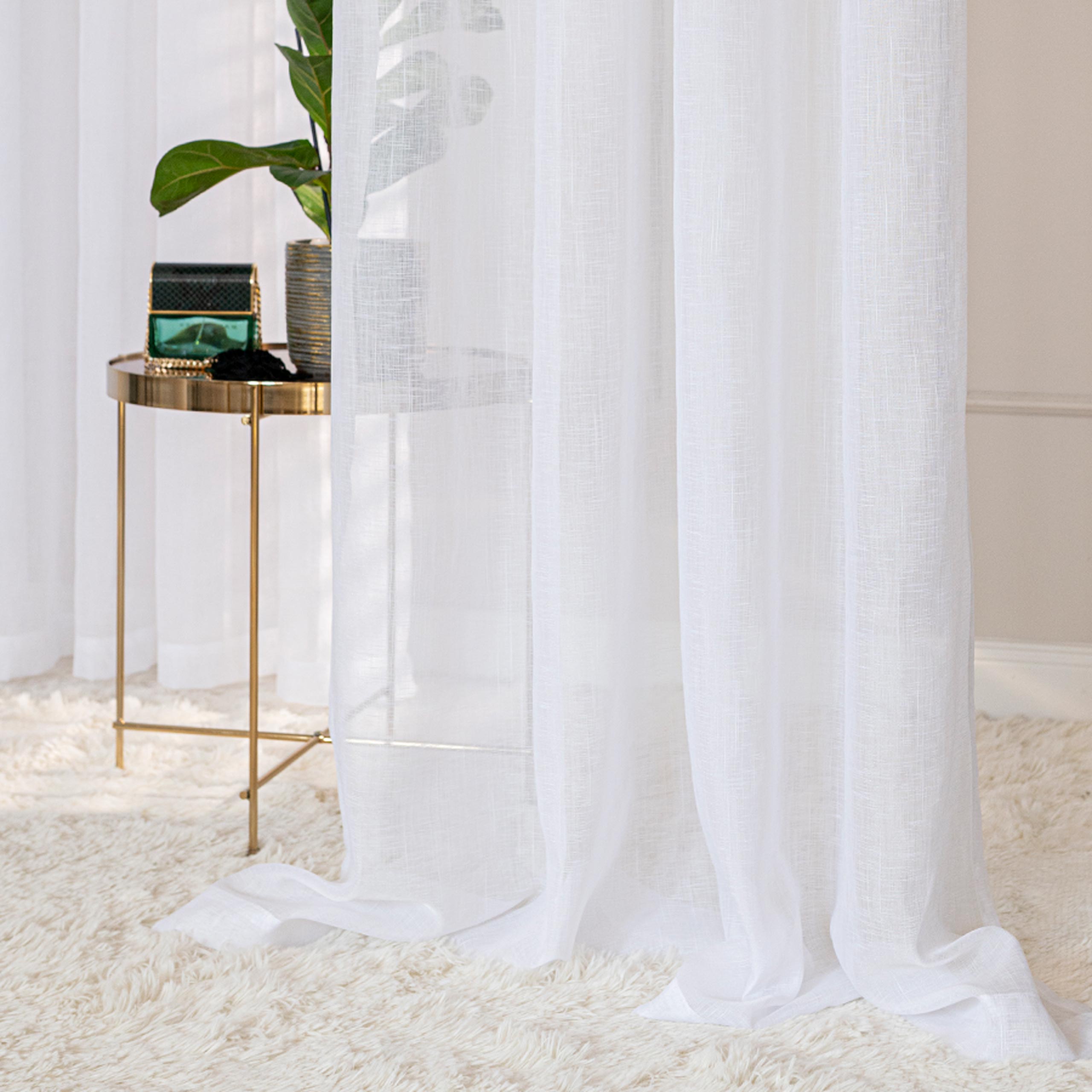 Tkanina o gramaturze 90 g/m² jest nieco bardziej mięsista, dzięki czemu firana pięknie się układa i zachowuje estetyczny wygląd nawet przy większej szerokości. Materiał delikatnie przepuszcza światło, rozjaśniając wnętrze bez jego nadmiernego zaciemniania.