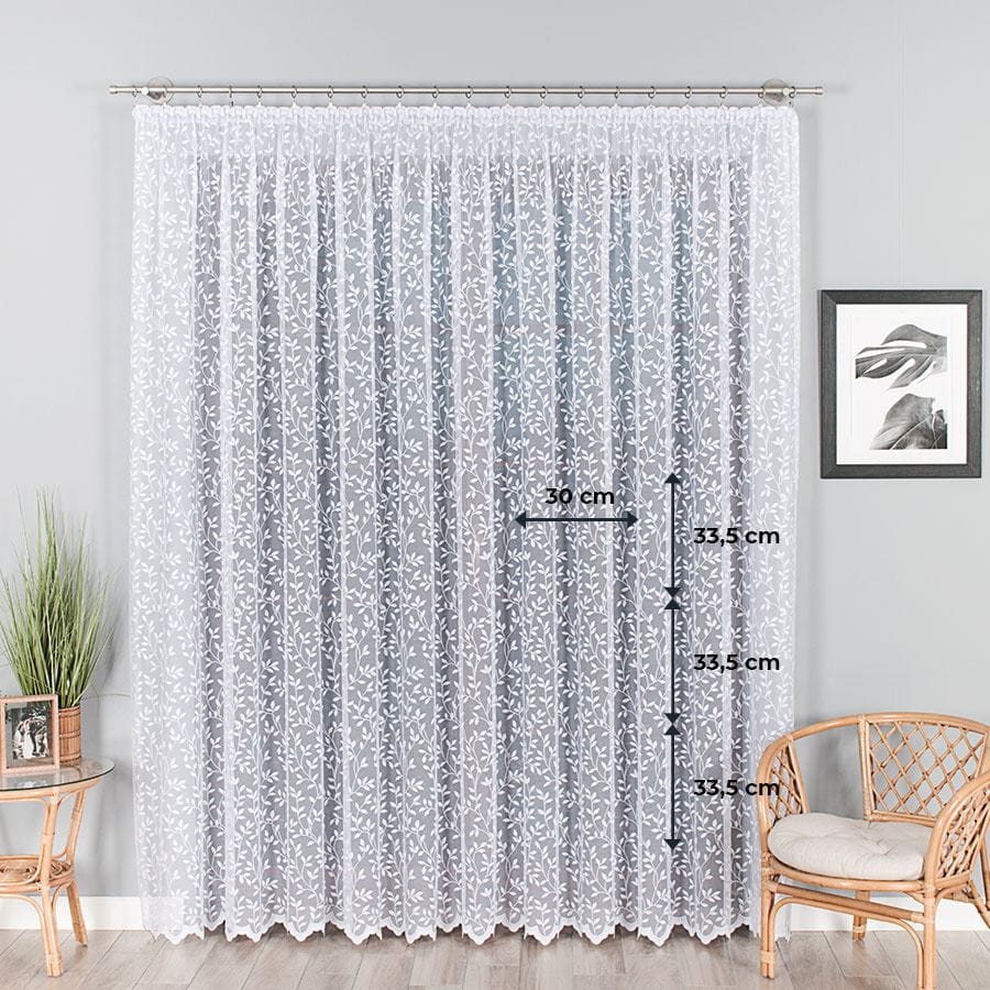 Delikatna biała żakardowa firana z roślinnym motywem wysokość 250 cm