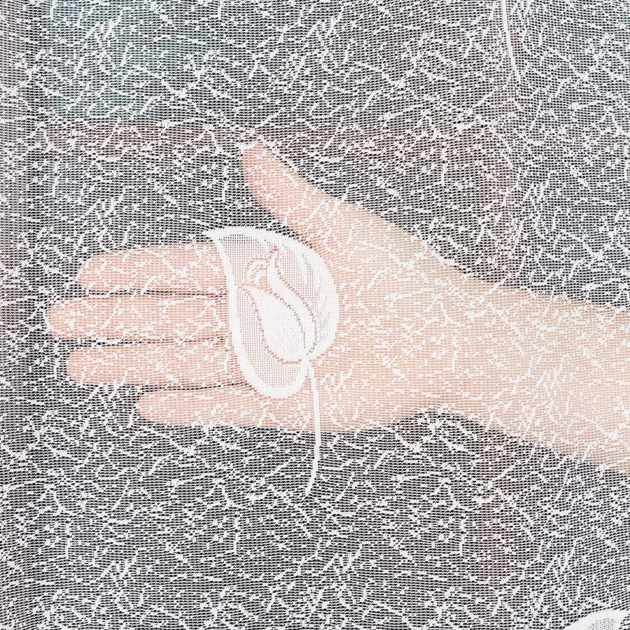 Firana gotowa żakardowa Liście, panel 150x160, biała, na tunel