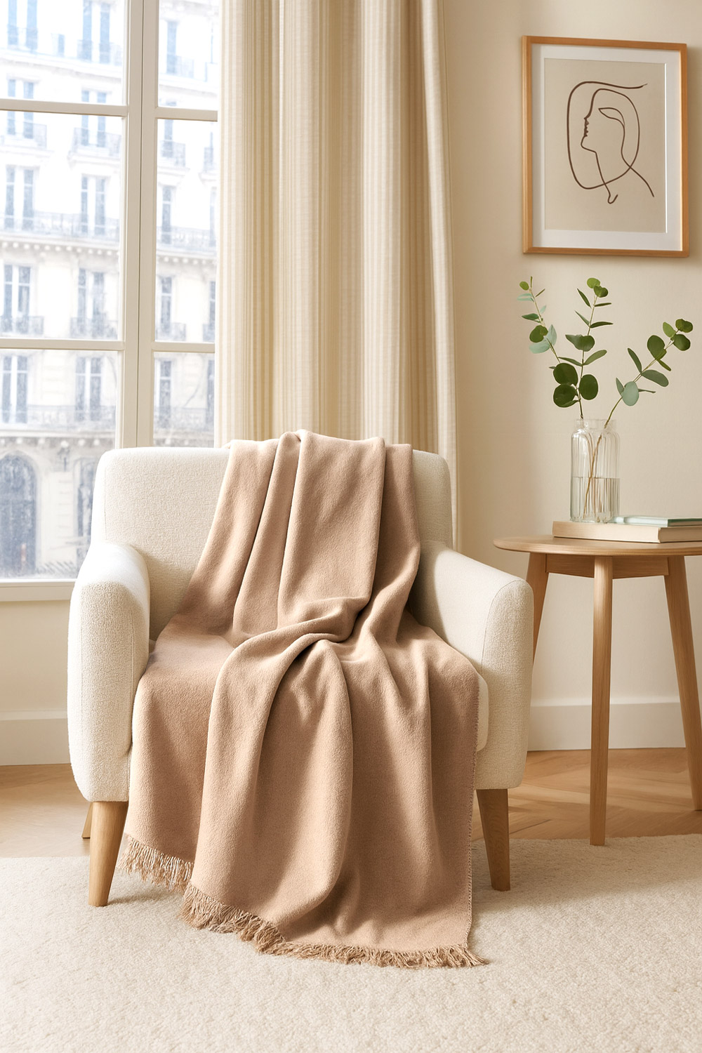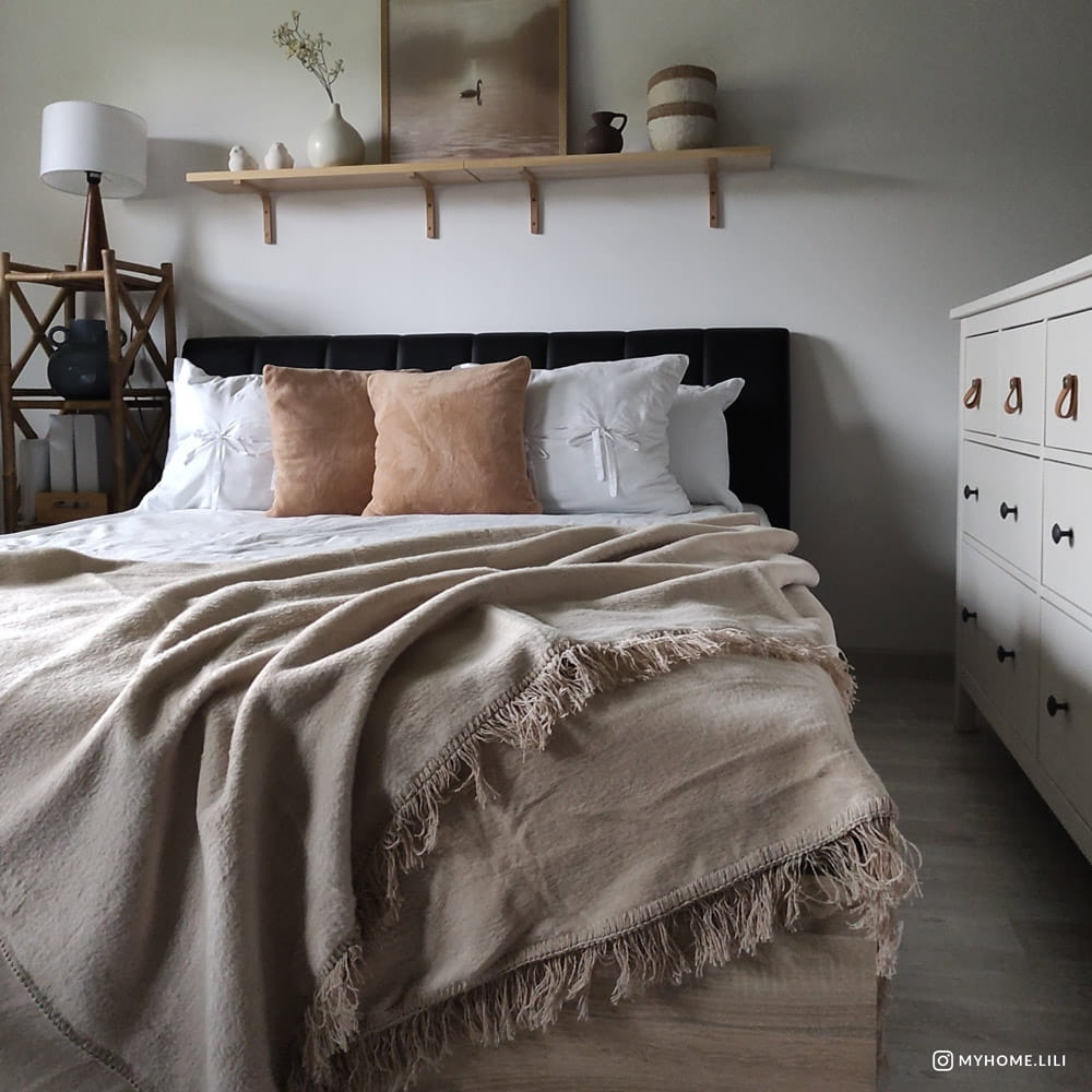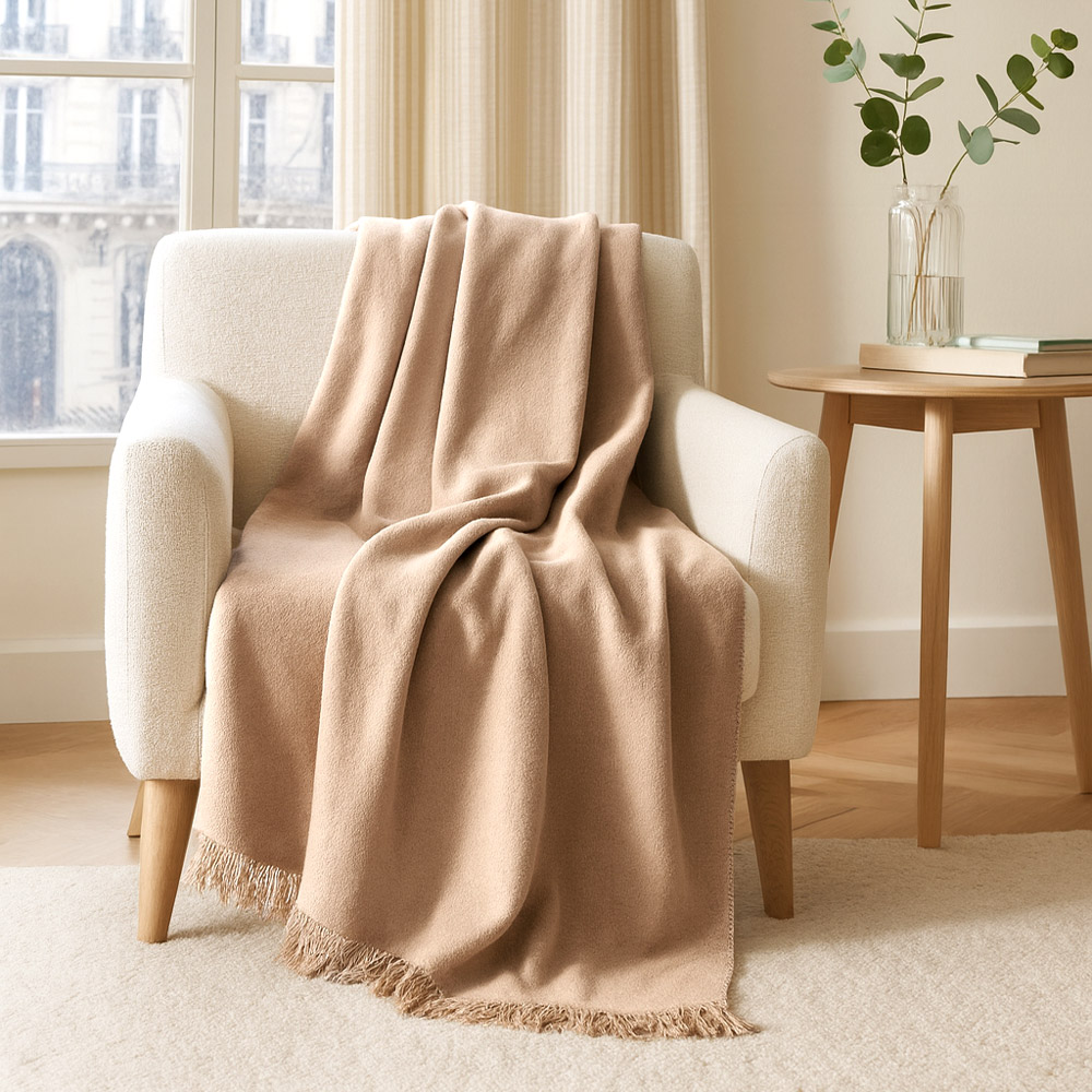 Dekoracyjne frędzle dodają subtelnego uroku i lekkości, a całość prezentuje się elegancko i naturalnie. Ten koc to połączenie funkcjonalności, estetyki i komfortu – idealny element wystroju, który podkreśla charakter wnętrza.
