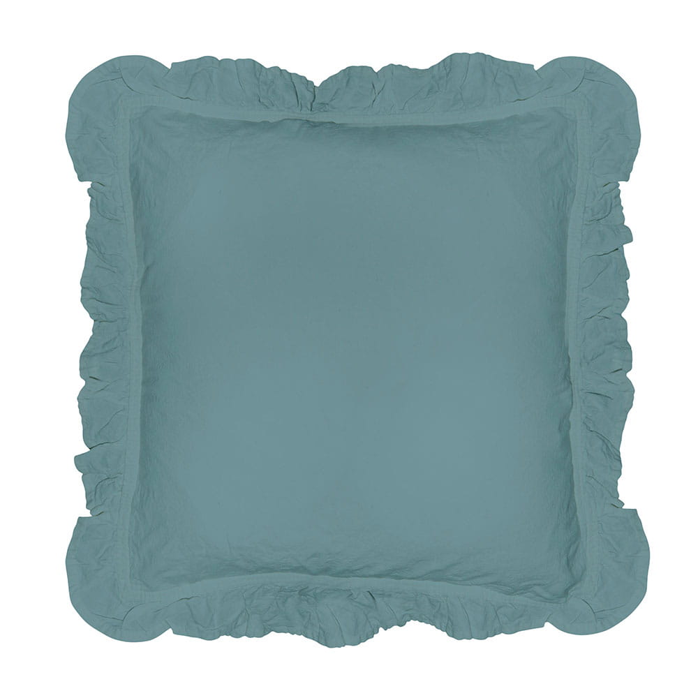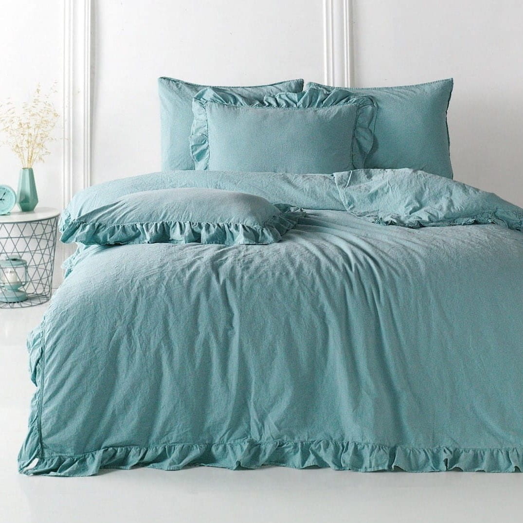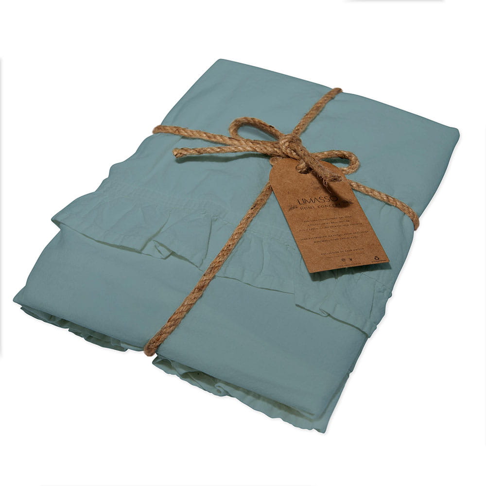 Pościel bawełniana z falbanką 220x200 Stonewashed Exclusive, Mineral Blue, niebieska