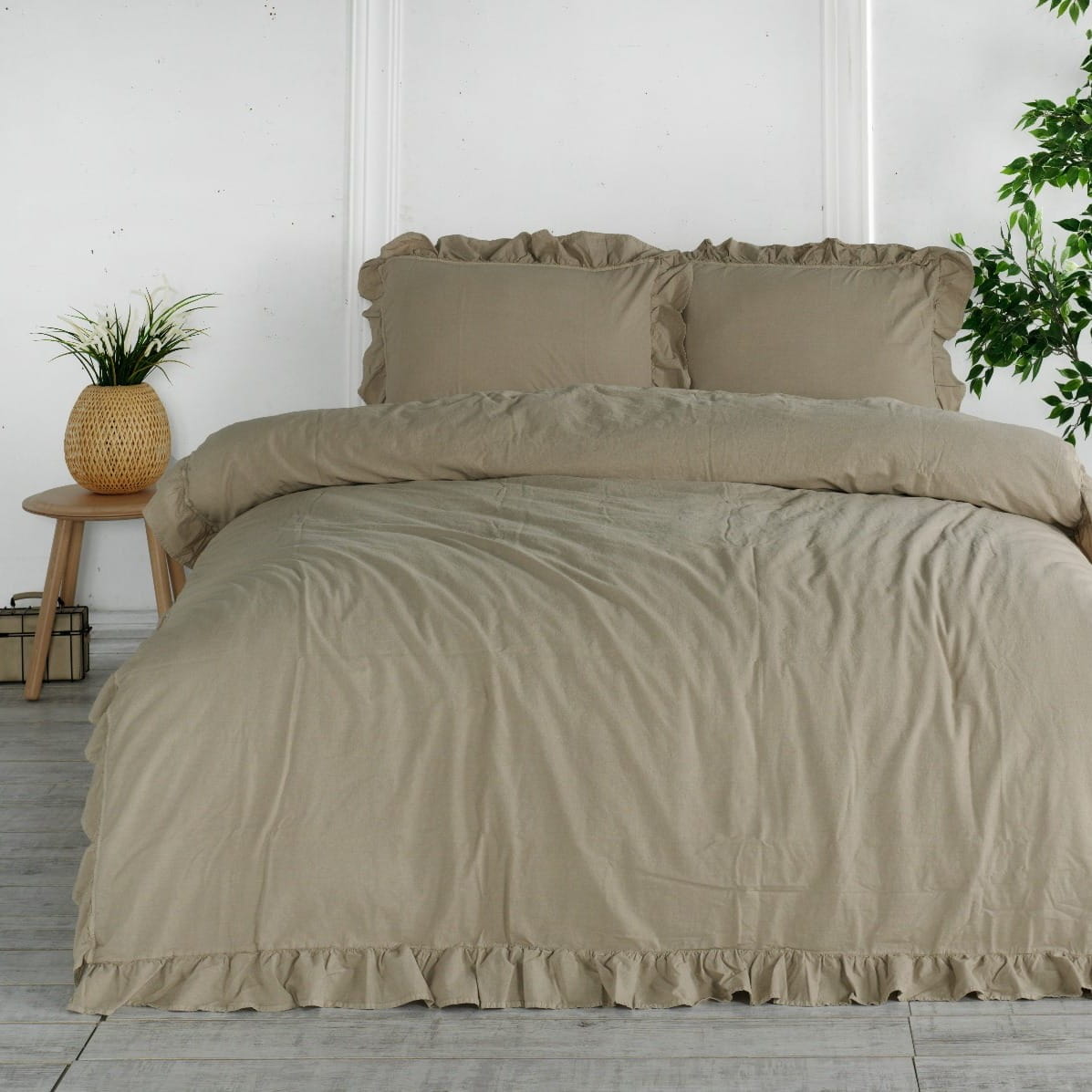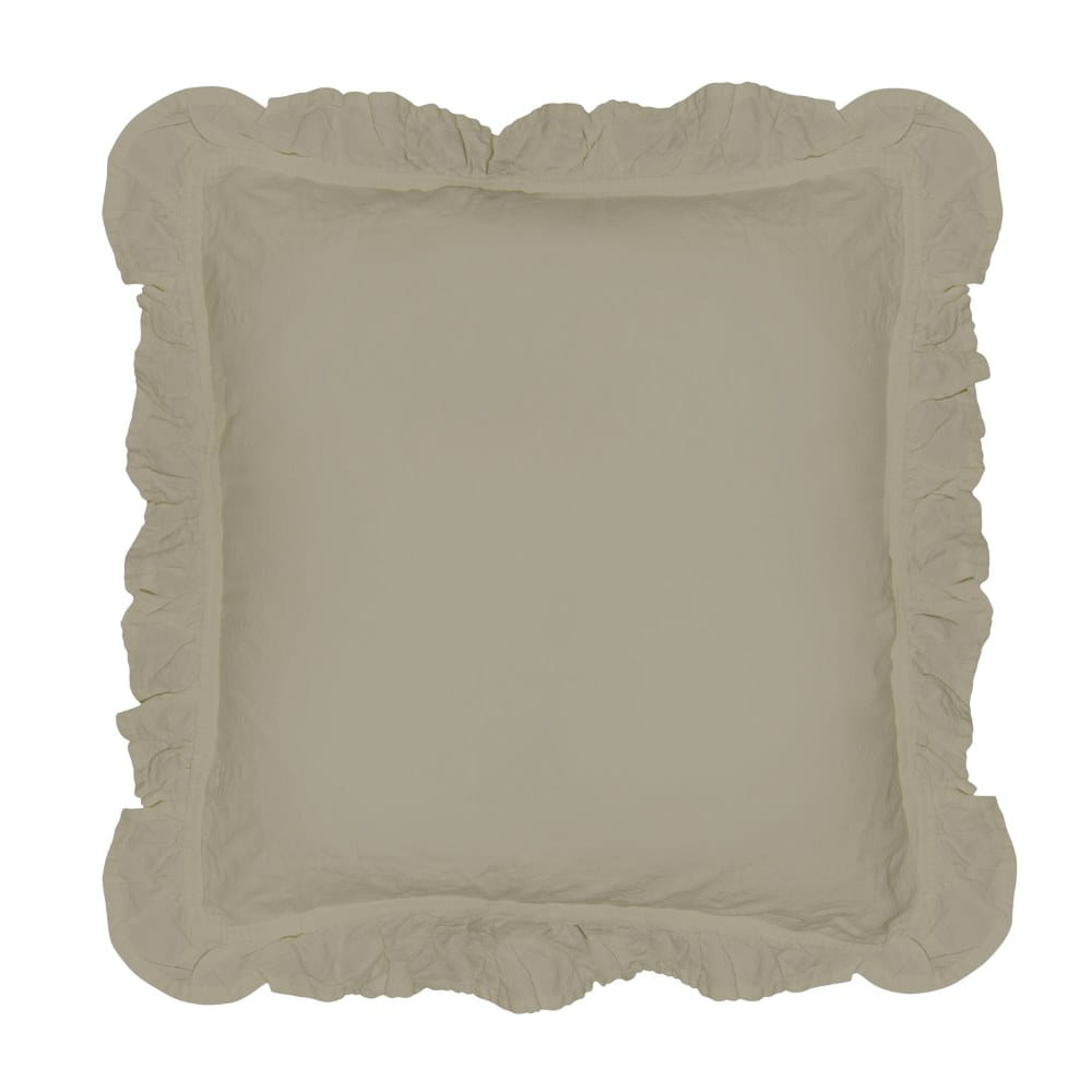 Piękny beżowym kolor w połączeniu z efektywną falbanką sprawia, że poszewki stanowią idealną dekorację. Poszewki w beżowym kolorze zyskują naturalny wygląd dzięki wyjątkowo miękkiej w dotyku tkaninie. Nie wymagają one prasowania dzięki czemu są bardzo praktyczne.