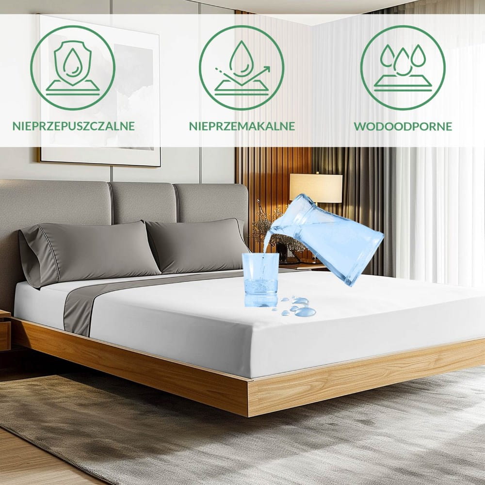 Bariera ochronna zatrzymuje ciecz, kurz i roztocza, co zwiększa higienę snu i sprawia, że prześcieradło doskonale sprawdzi się w codziennym użytkowaniu, również przy dzieciach oraz osobach starszych.