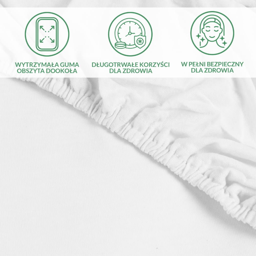 Elastyczna forma sprawia, że prześcieradło nie gniecie się i nie odkształca, dzięki czemu zachowuje estetyczny wygląd nawet po wielu praniach.