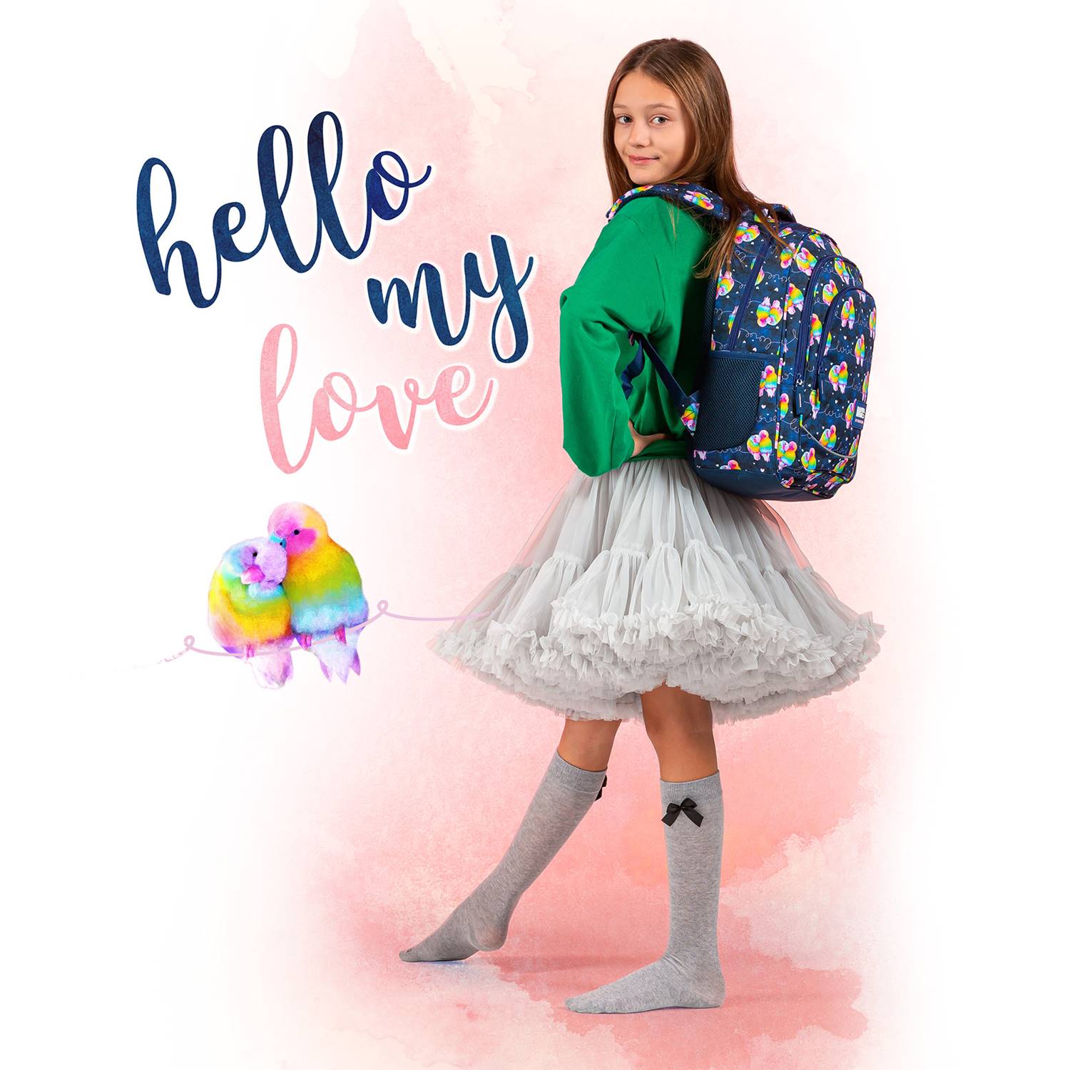 Formy płatnościRomantyczny plecak z kolekcji Love ozdobiony wielobarwnymi papużkami tulącymi się na tle głębi granatu, w połączeniu z intensywnymi barwami zieleni i fioletu. Idealny dla dziewczynki, którą miłość inspiruje do wszystkiego, co piękne!