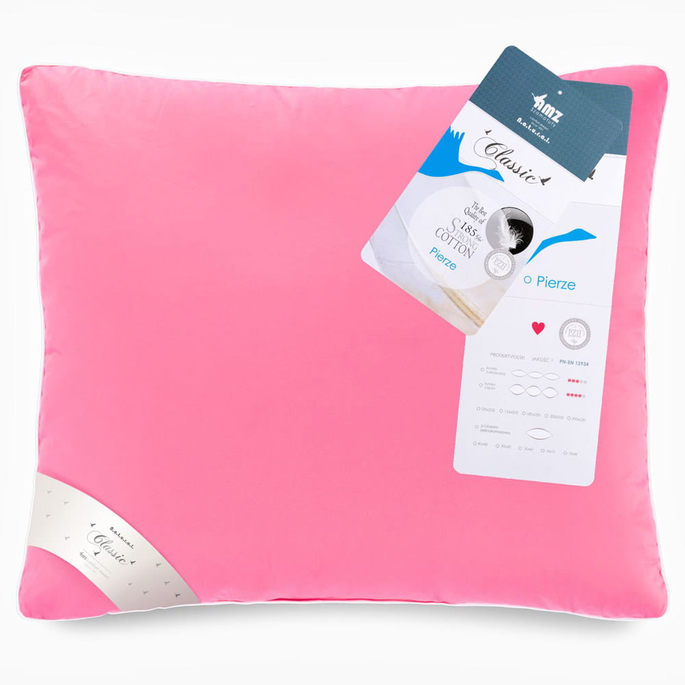 Poduszka z pierza 50x70 cm różowa, pierze ręcznie darte, linia Natural Classic