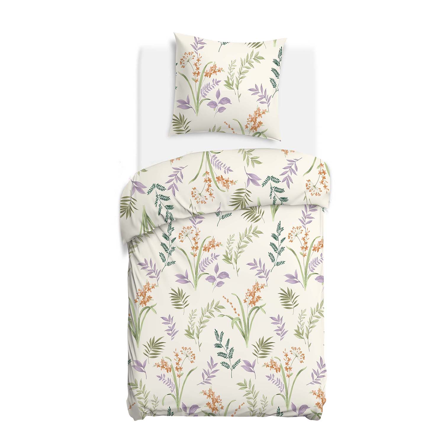 Pościel bawełniana 140x200 Herbalia kremowa w botaniczny wzór kwiatowy, Cottonlove