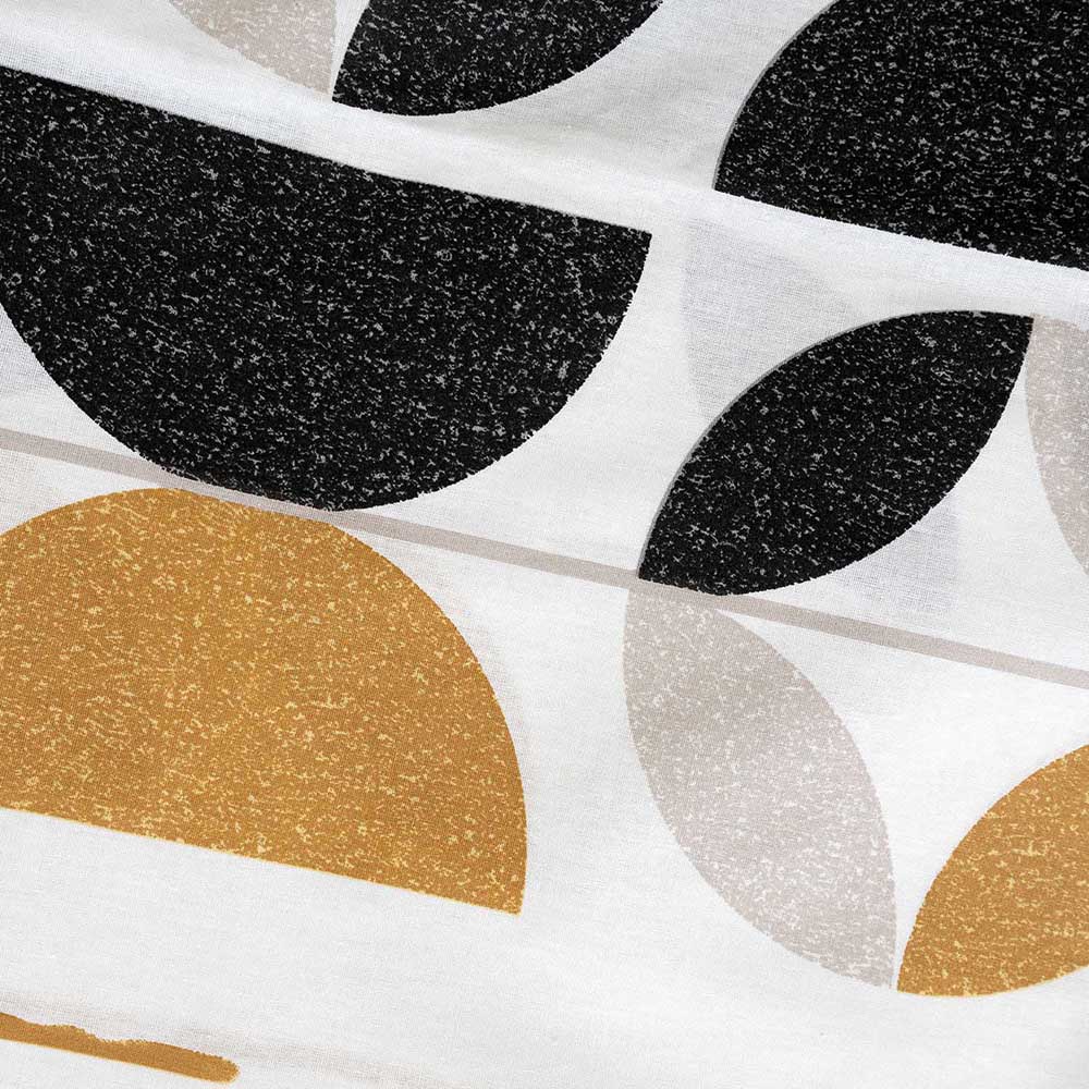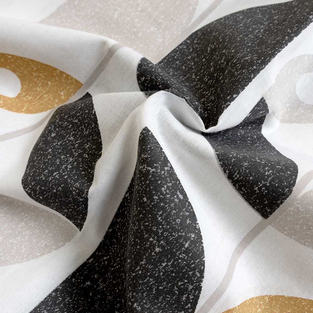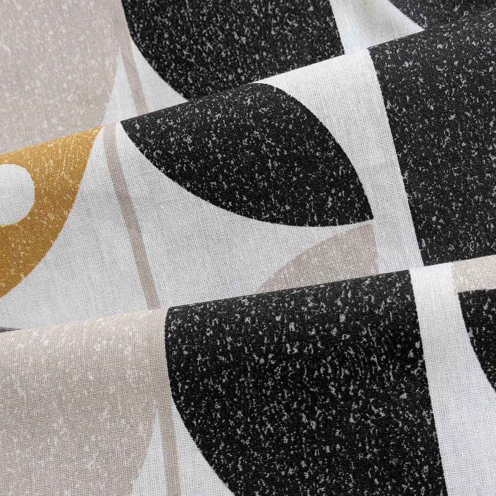 Nowoczesny geometryczny wzór w kontrastowych odcieniach szarości, bieli i musztardy przyciąga uwagę i nadaje wnętrzu designerskiego charakteru. Dynamiczna kompozycja świetnie sprawdzi się w nowoczesnych, odważniejszych aranżacjach, podkreślając indywidualny styl sypialni.