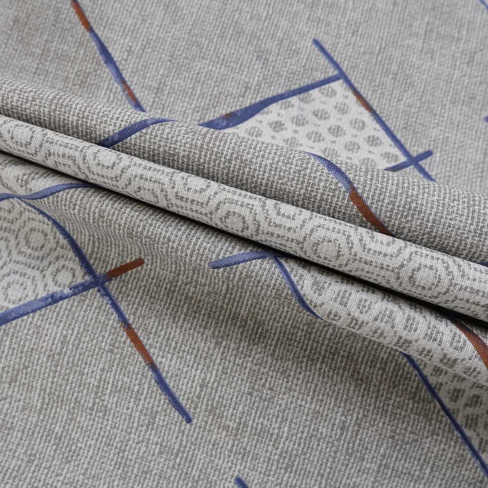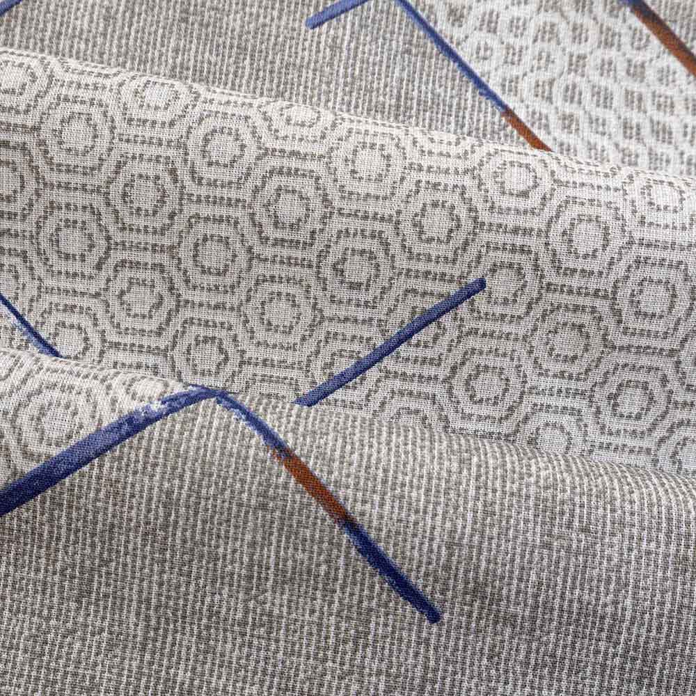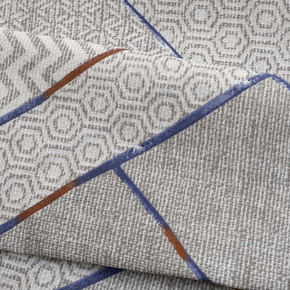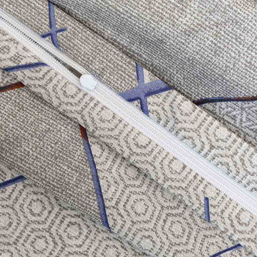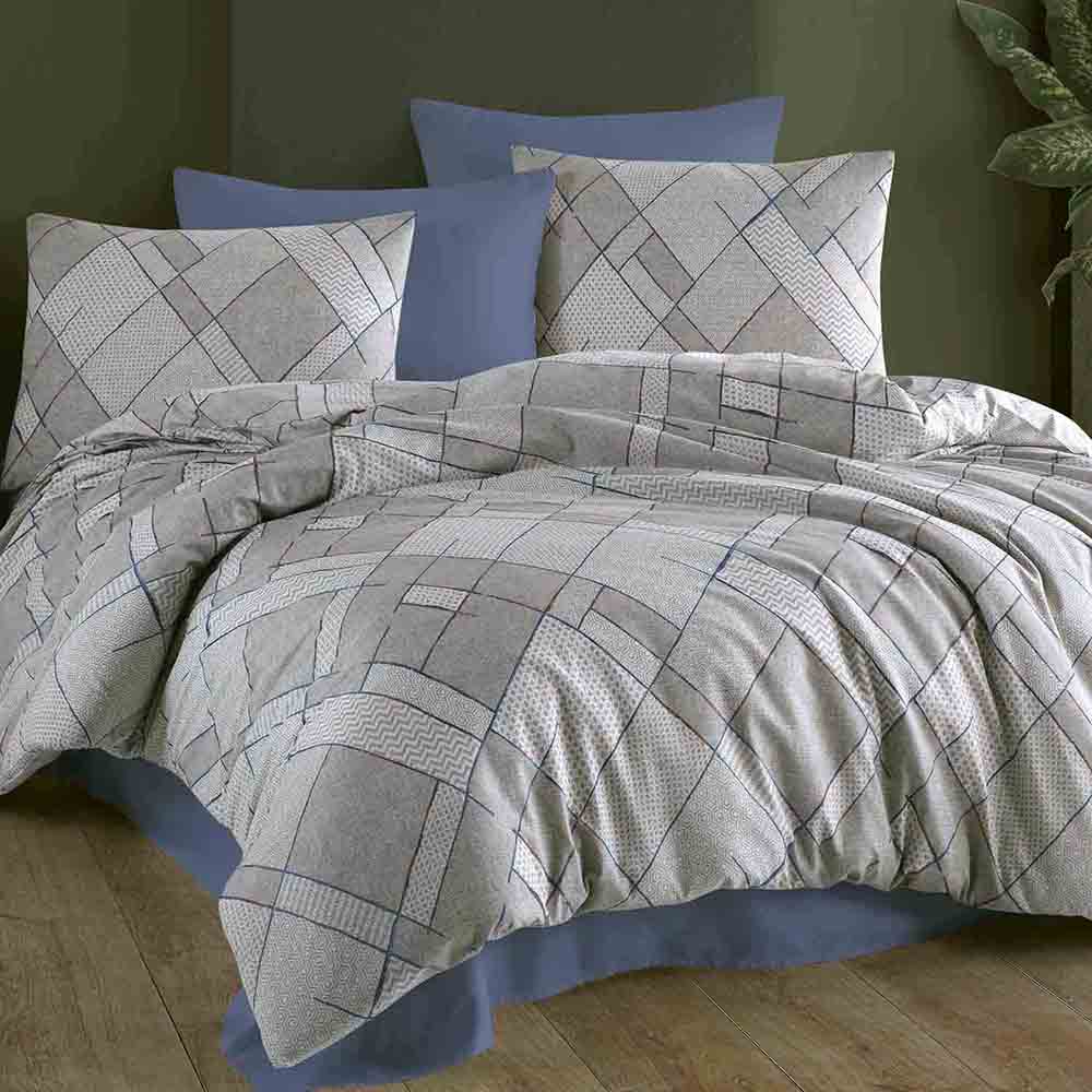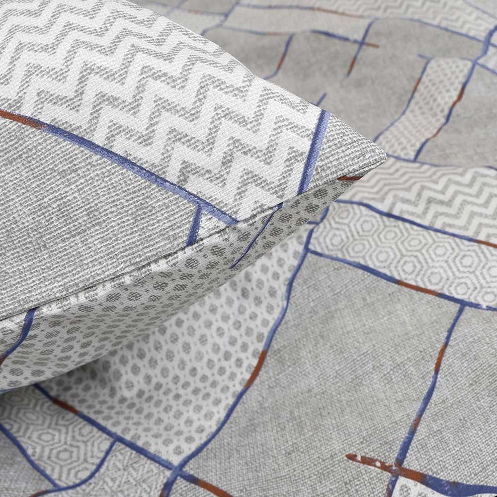 Elegancki komplet szarej pościeli 160x200 cm + 2x poszewki na poduszki 70x80 cm w geometryczny wzór z niebieskimi i brązowymi detalami