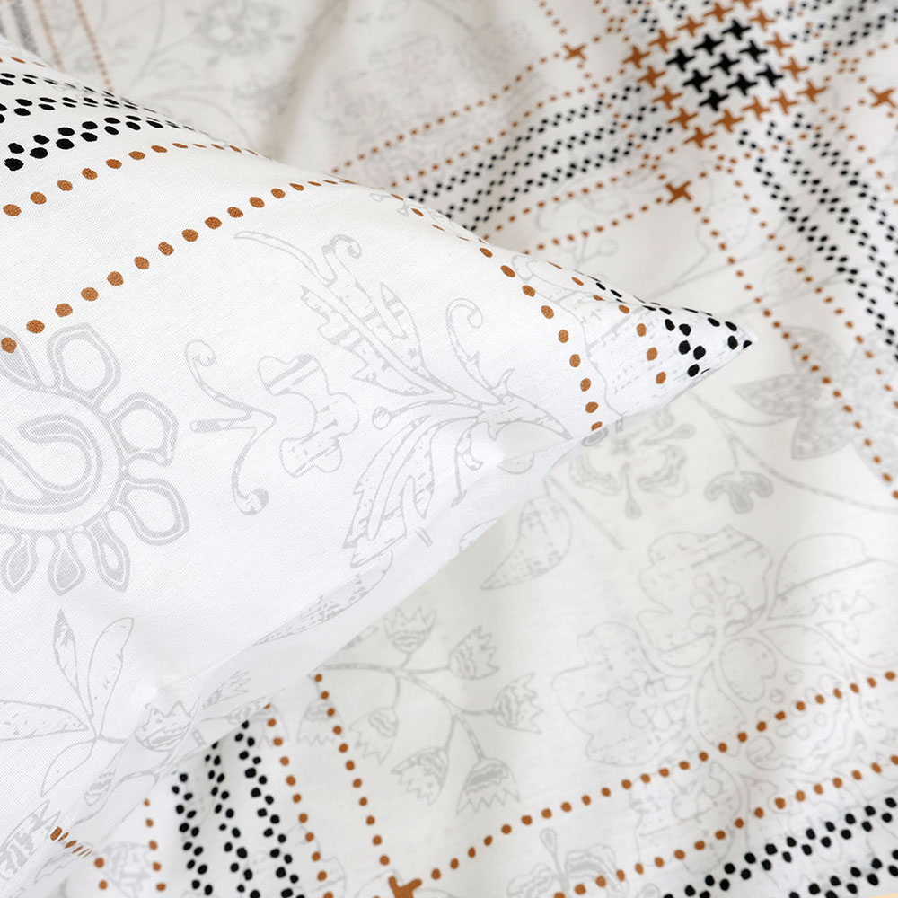 Pościel bawełniana 160x200 Zigo Grey szara i biała w czarny ornament, Cottonlove Exclusive