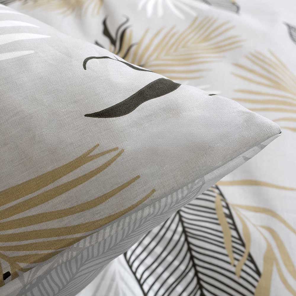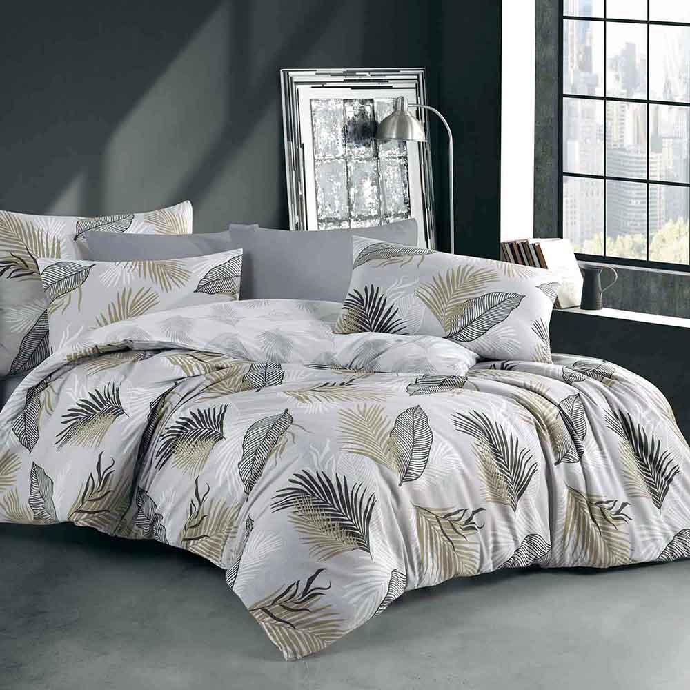 Pościel bawełniana 160x200 Sonella szara w czarne i beżowe liście, Cottonlove Exclusive