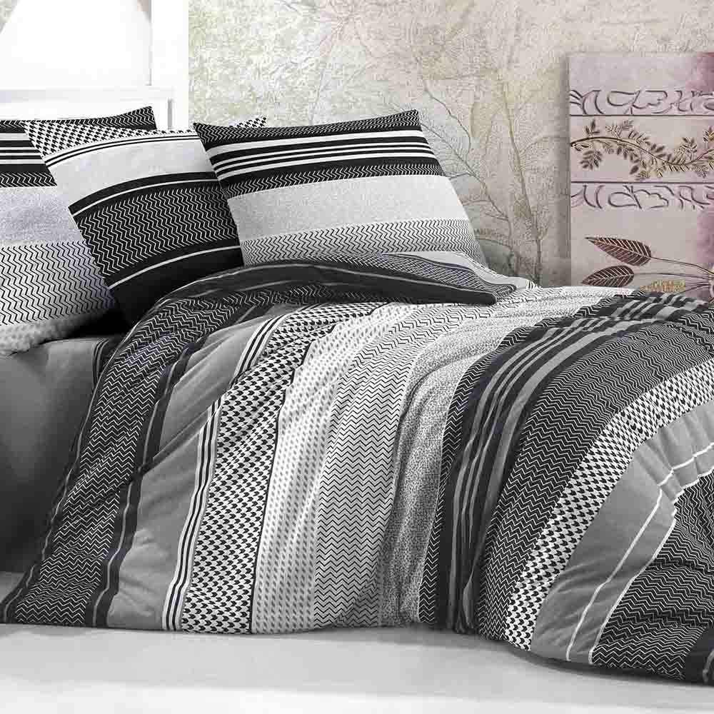 Elegancki komplet czarno-białej pościeli 160x200 cm + 2x poszewki na poduszki 70x80 cm w dekoracyjny szary ornament