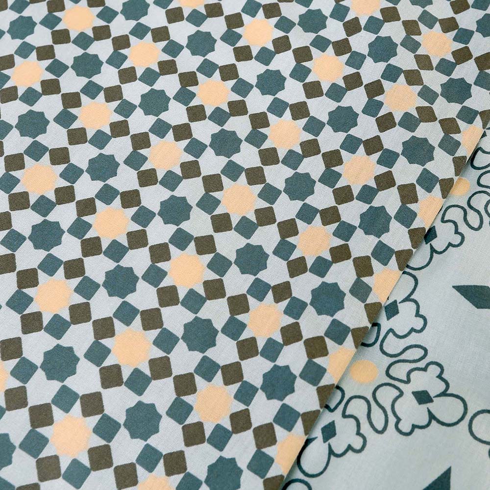 Niebieska mozaikowa pościel inspirowana śródziemnomorskim stylem w rozmiarze 200x220 cm