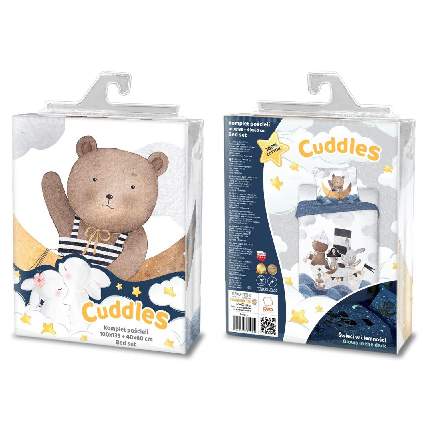 Miękka w dotyku, piękna pościel dziecięca do pokoiku dla chłopca Miś, w kolorach białego i niebieskiego