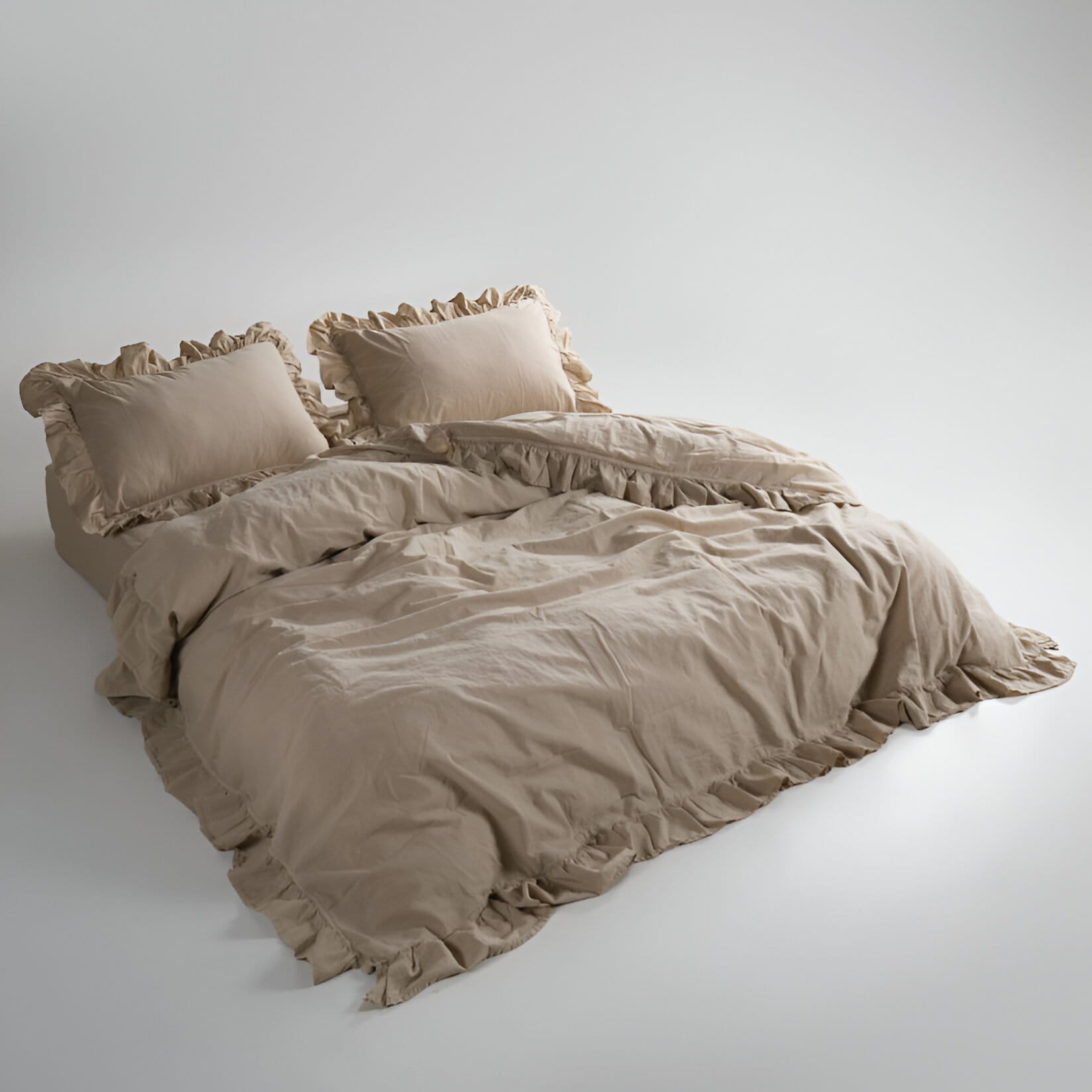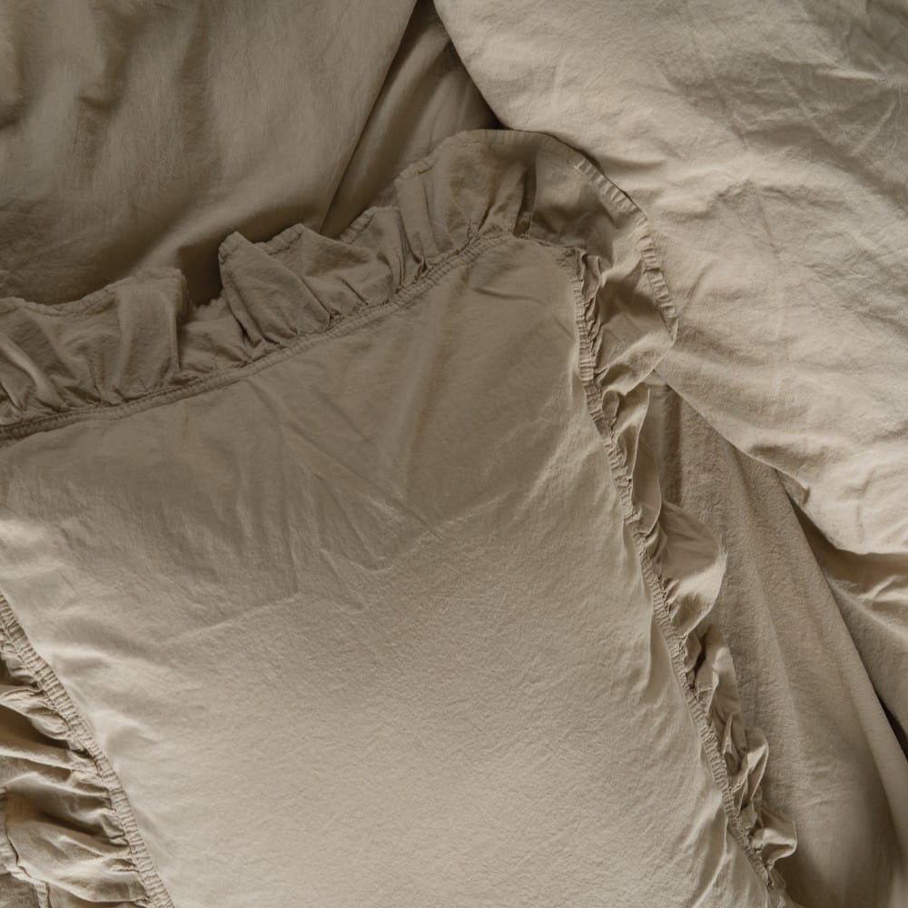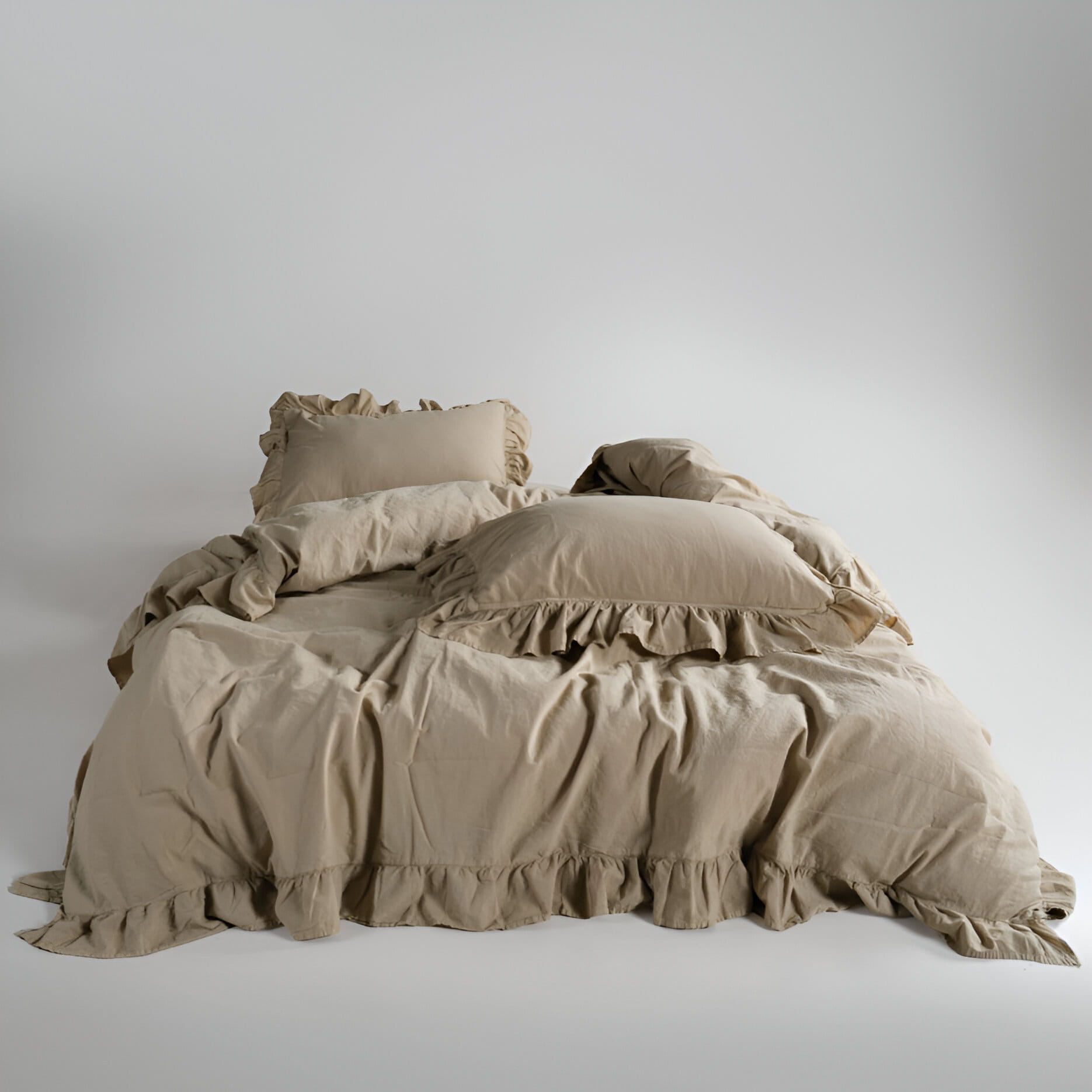 Pościel bawełniana z falbanką 220x200 Stonewashed Exclusive, Oxfordtan, beżowa