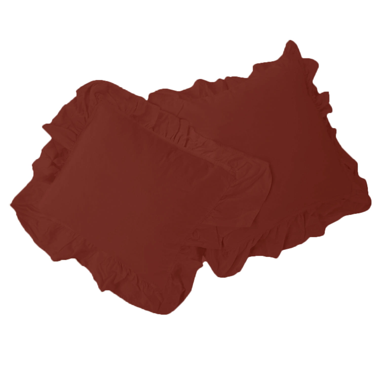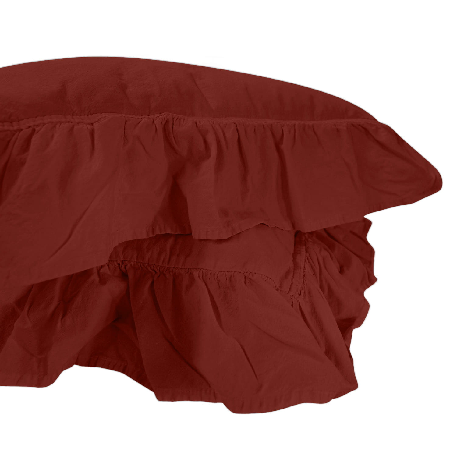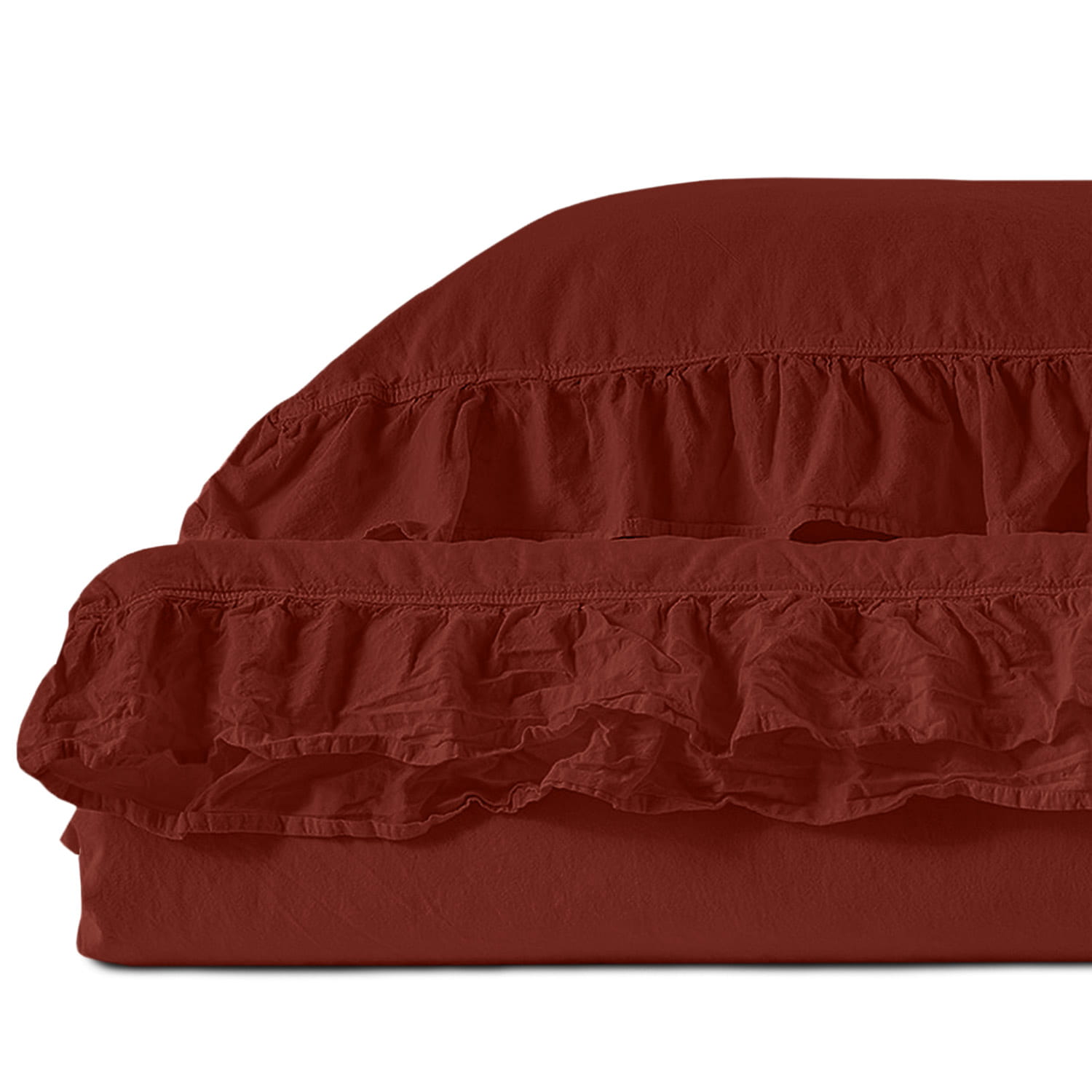 Elegancka minimalistyczna jednobarwna pościel bawełniana 160x200 cm w delikatne falbanki w kolorze bordowym
