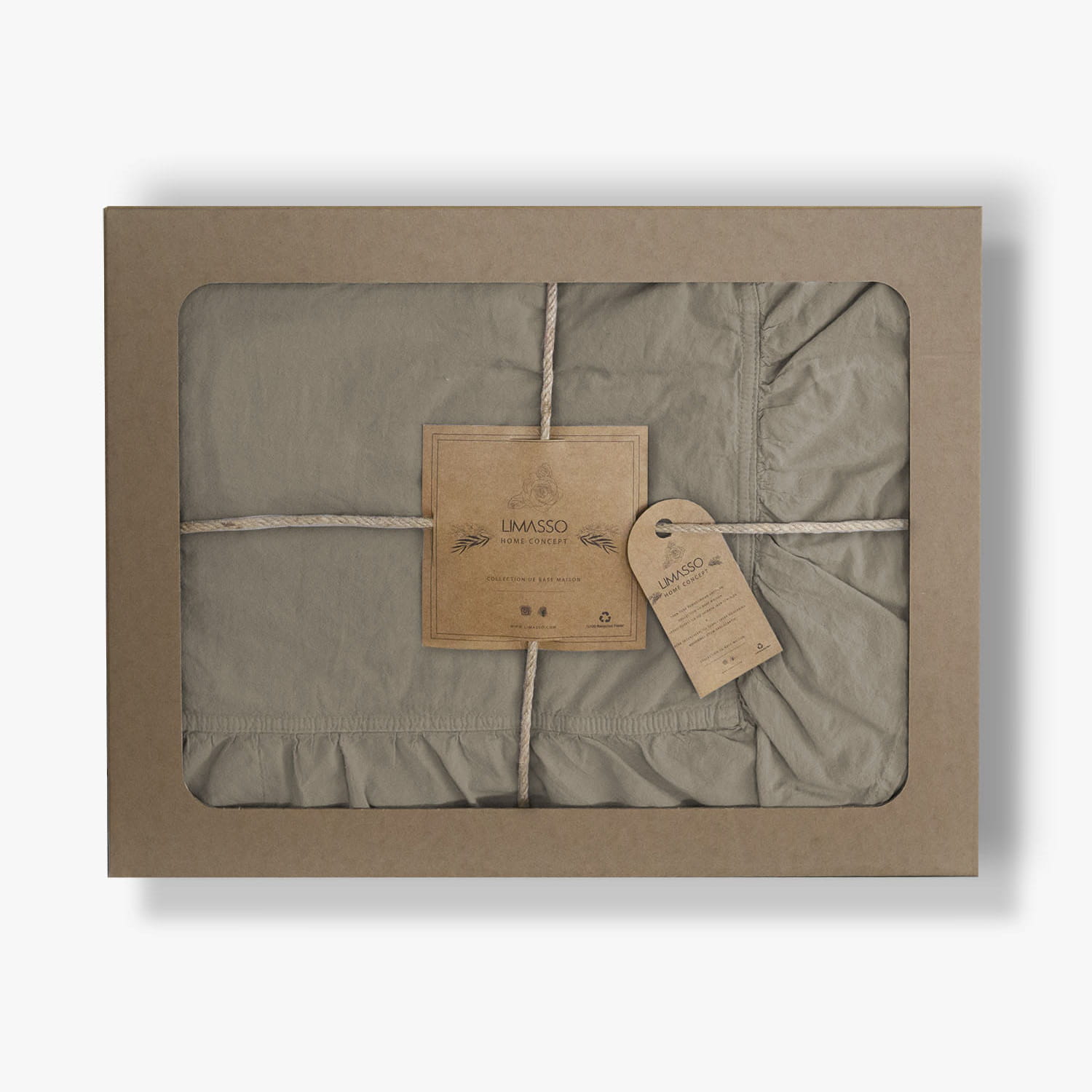 Pościel bawełniana z falbanką 220x200 Stonewashed Exclusive, Opal Grey, szara