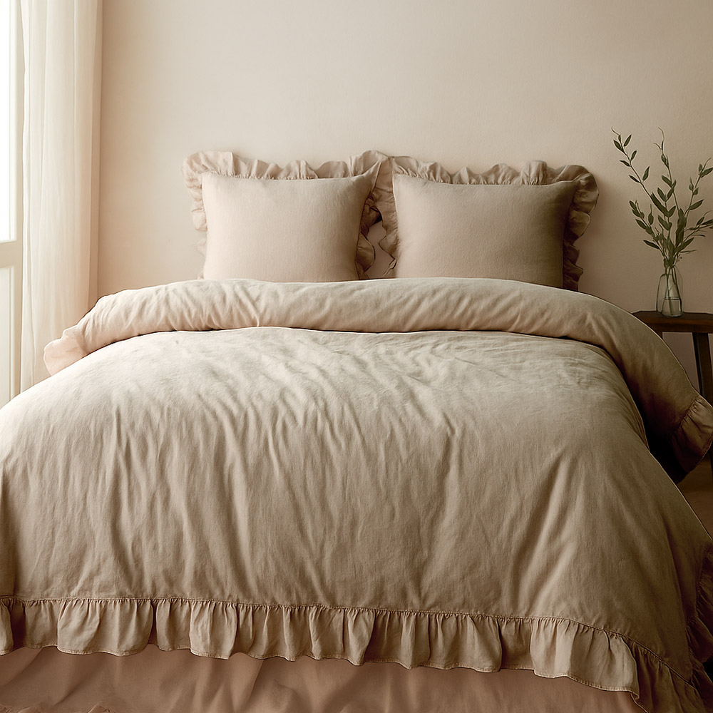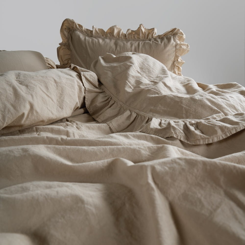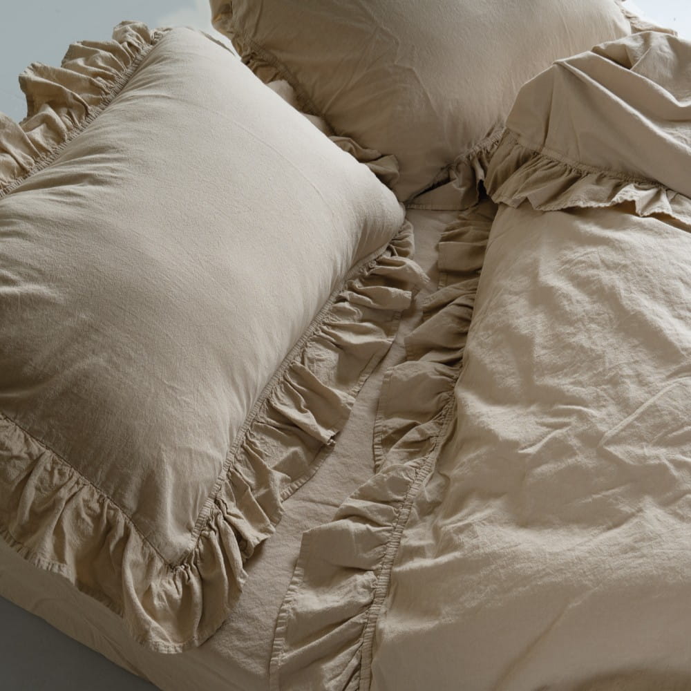 Pościel bawełniana z falbanką 160x200 Stonewashed Exclusive, Oxfordtan, beżowa