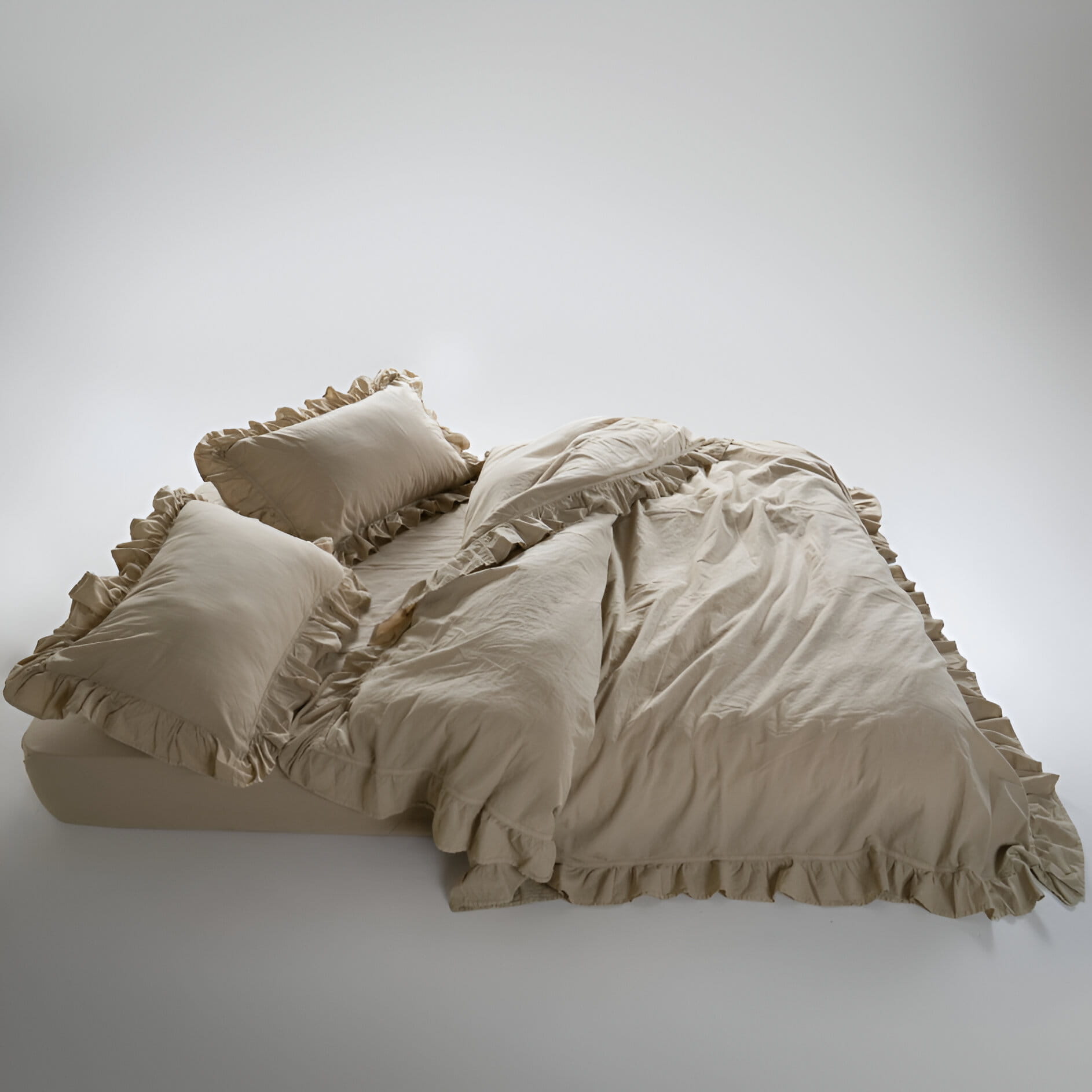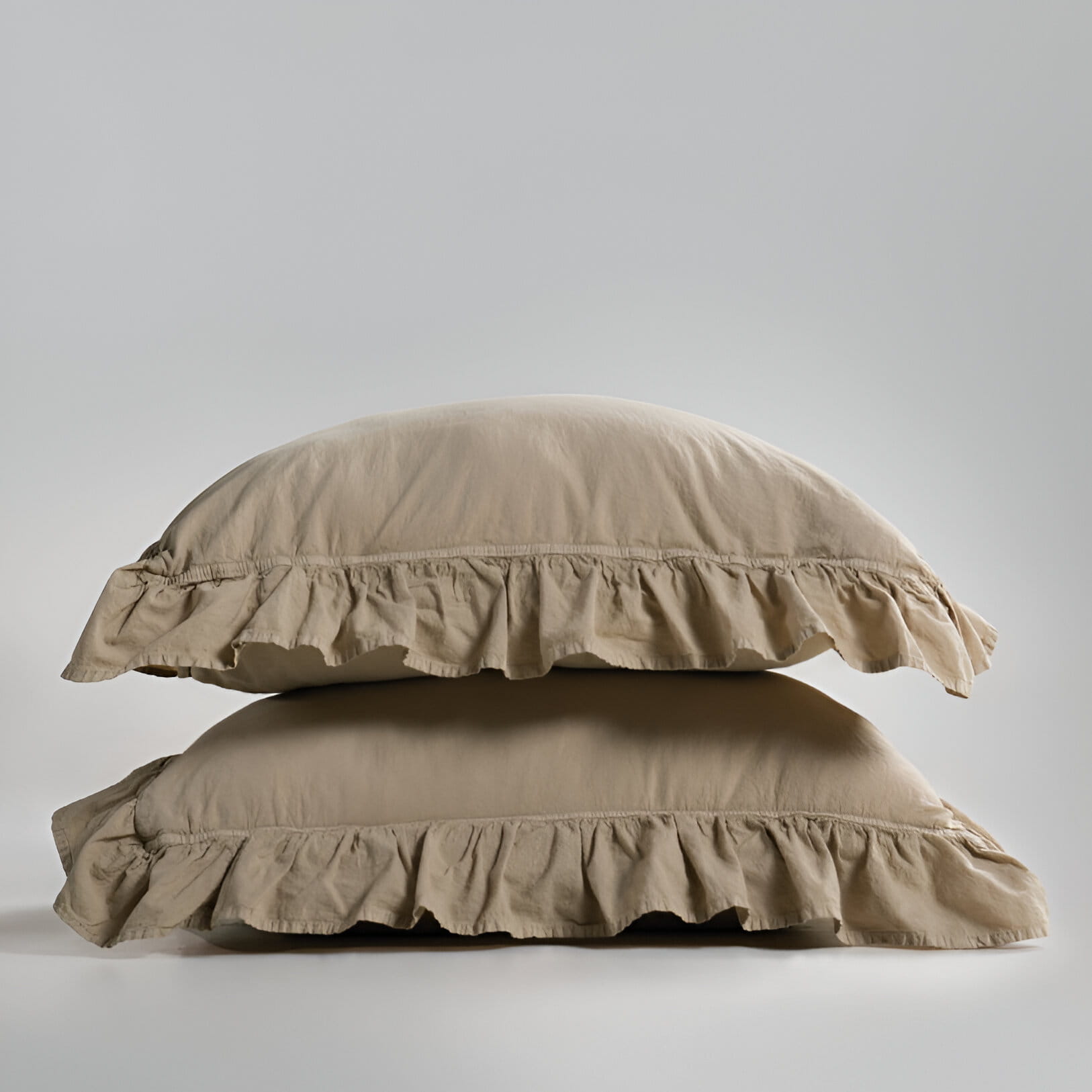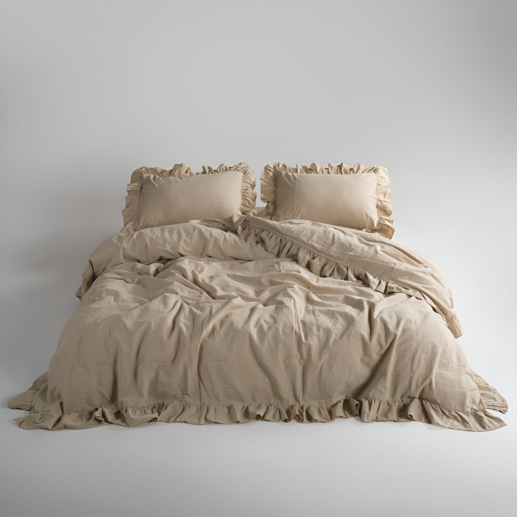 Pościel bawełniana z falbanką 160x200 Stonewashed Exclusive, Oxfordtan, beżowa