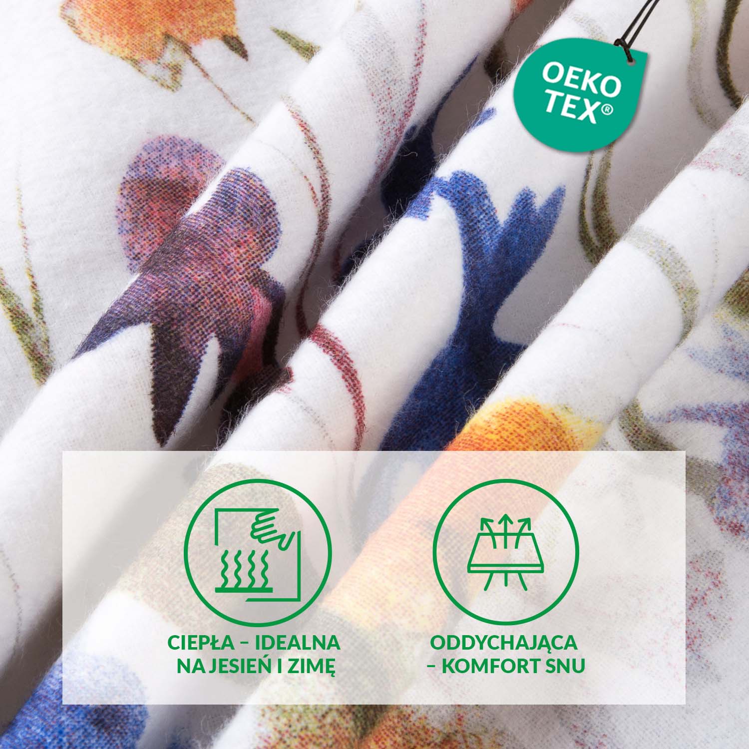 Zawsze ciepło i przytulnie - flanela to materiał, który doskonale zatrzymuje ciepło, dlatego pod tą pościelą nie zmarzniesz nawet w chłodne, jesienne i zimowe noce. Jednocześnie tkanina „oddycha”, więc nie przegrzewa i pozwala komfortowo przespać całą noc.