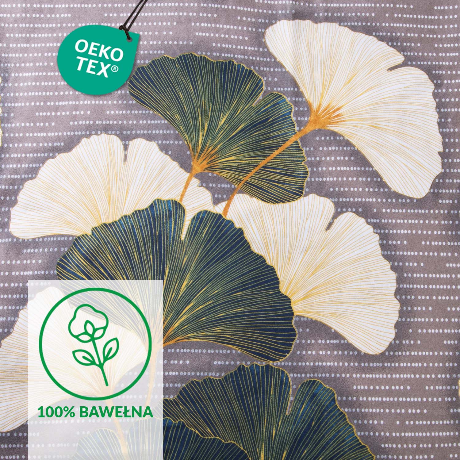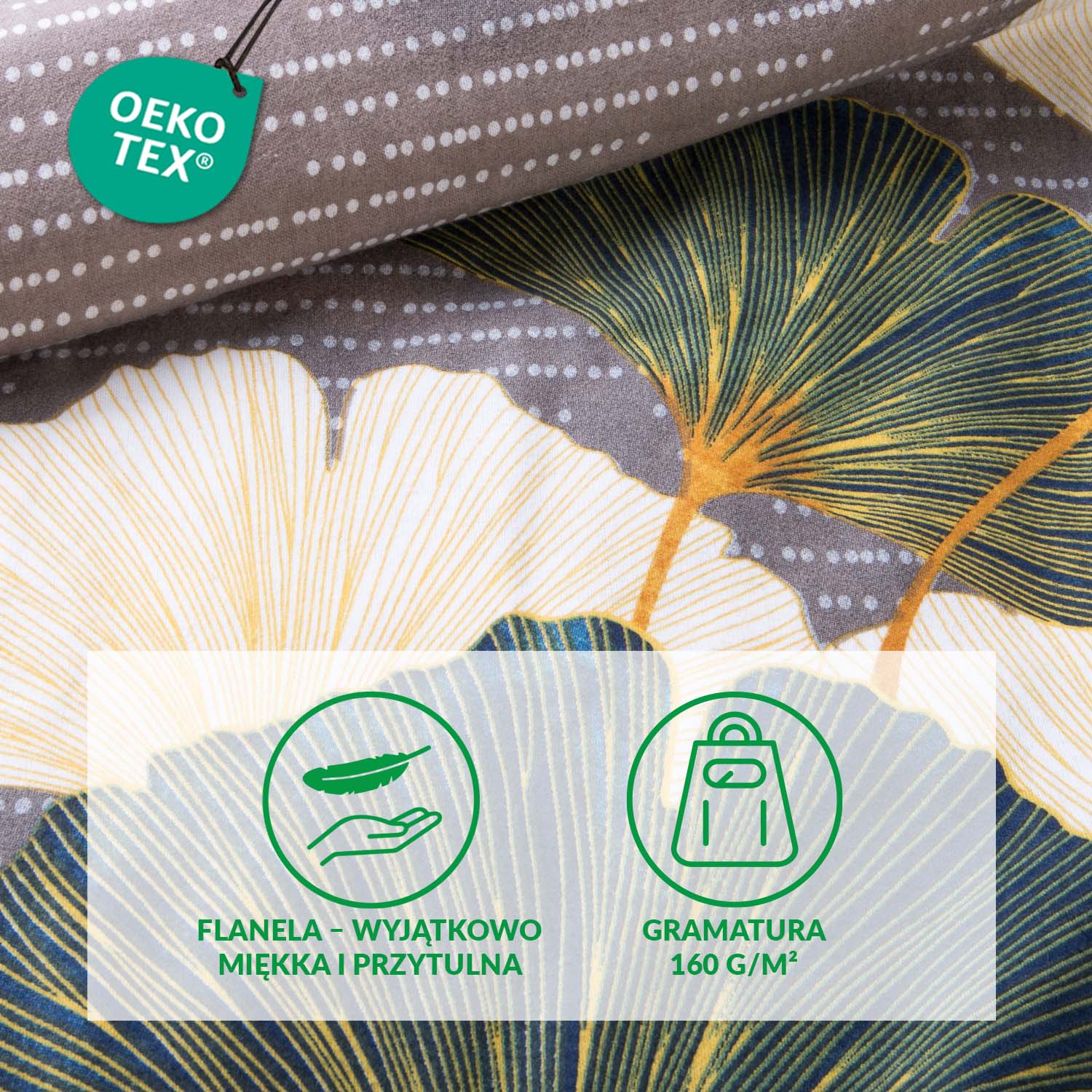 Pościel flanelowa 160x200 Solenne Light szara, liście miłorzębu, Flanelove