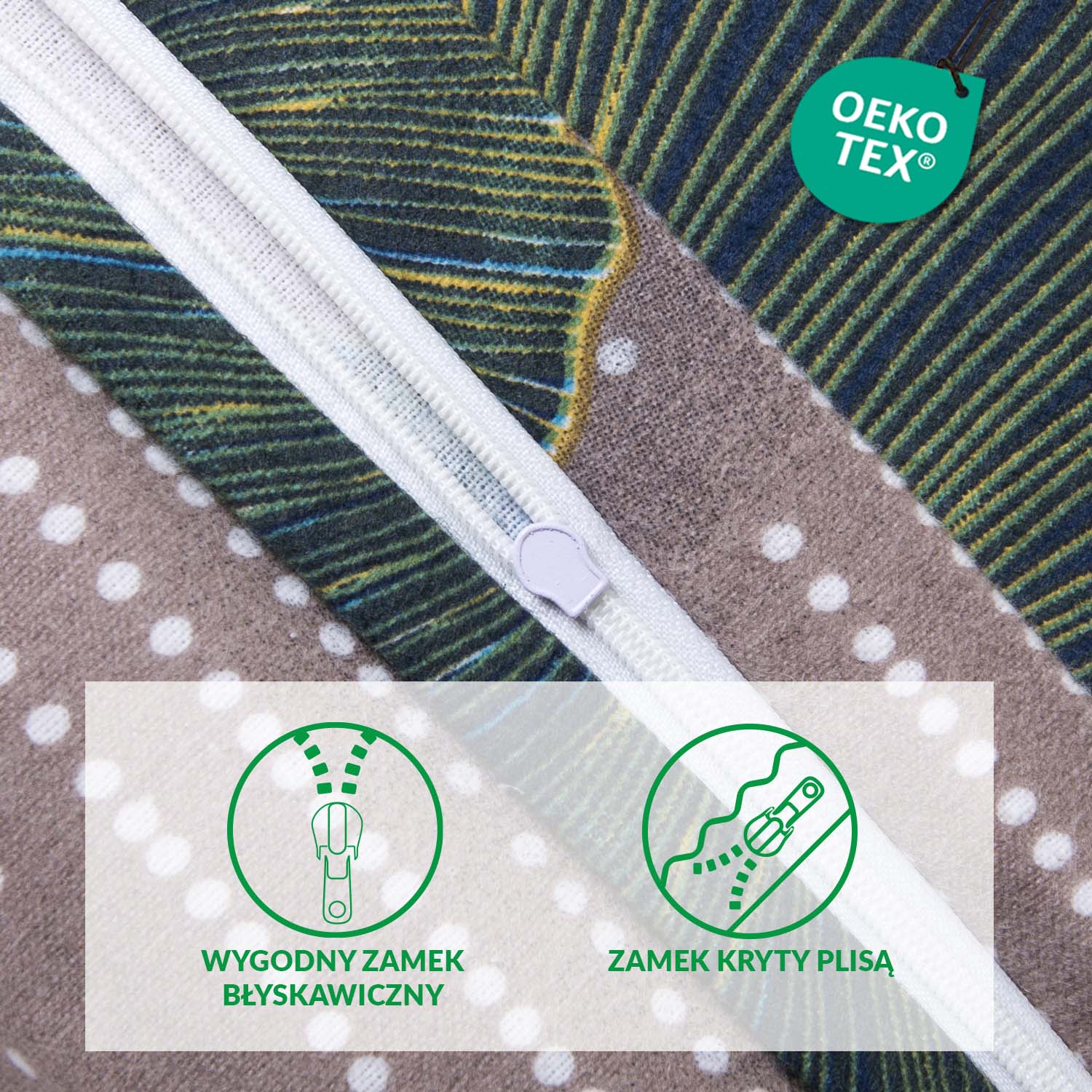 Praktyczne zapięcie na zamek błyskawiczny - zarówno poszwa 180x200 cm, jak i poszewka wyposażone są w wygodny zamek, który przykryty został delikatną plisą, co ułatwia szybką zmianę bielizny pościelowej, codzienne użytkowanie i nie podrażnia skóry.