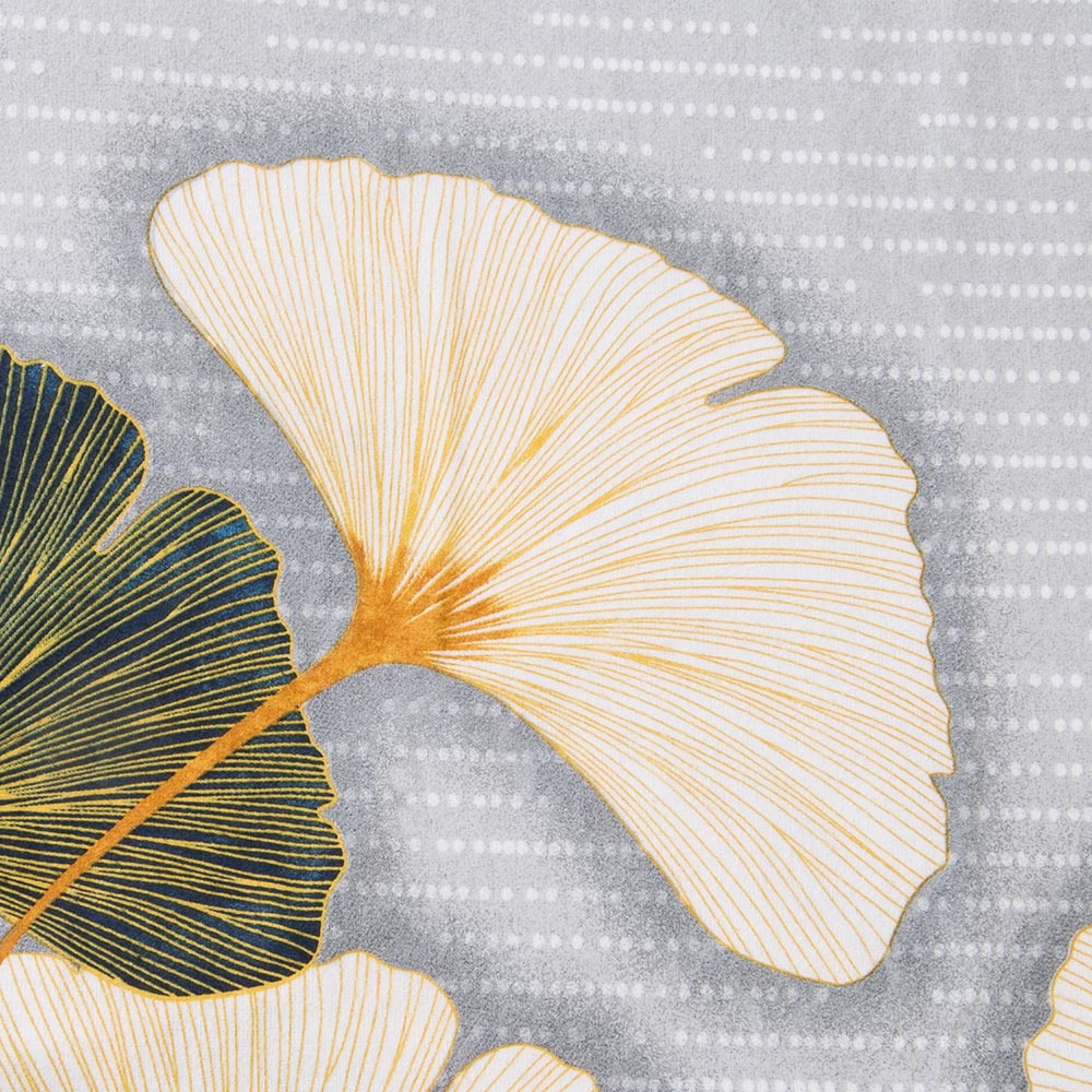 Elegancki wzór miłorzębu w jasnej odsłonie - delikatne liście miłorzębu na jasnym tle tworzą spokojną, harmonijną kompozycję, która dodaje sypialni świeżości i subtelnej elegancji.
