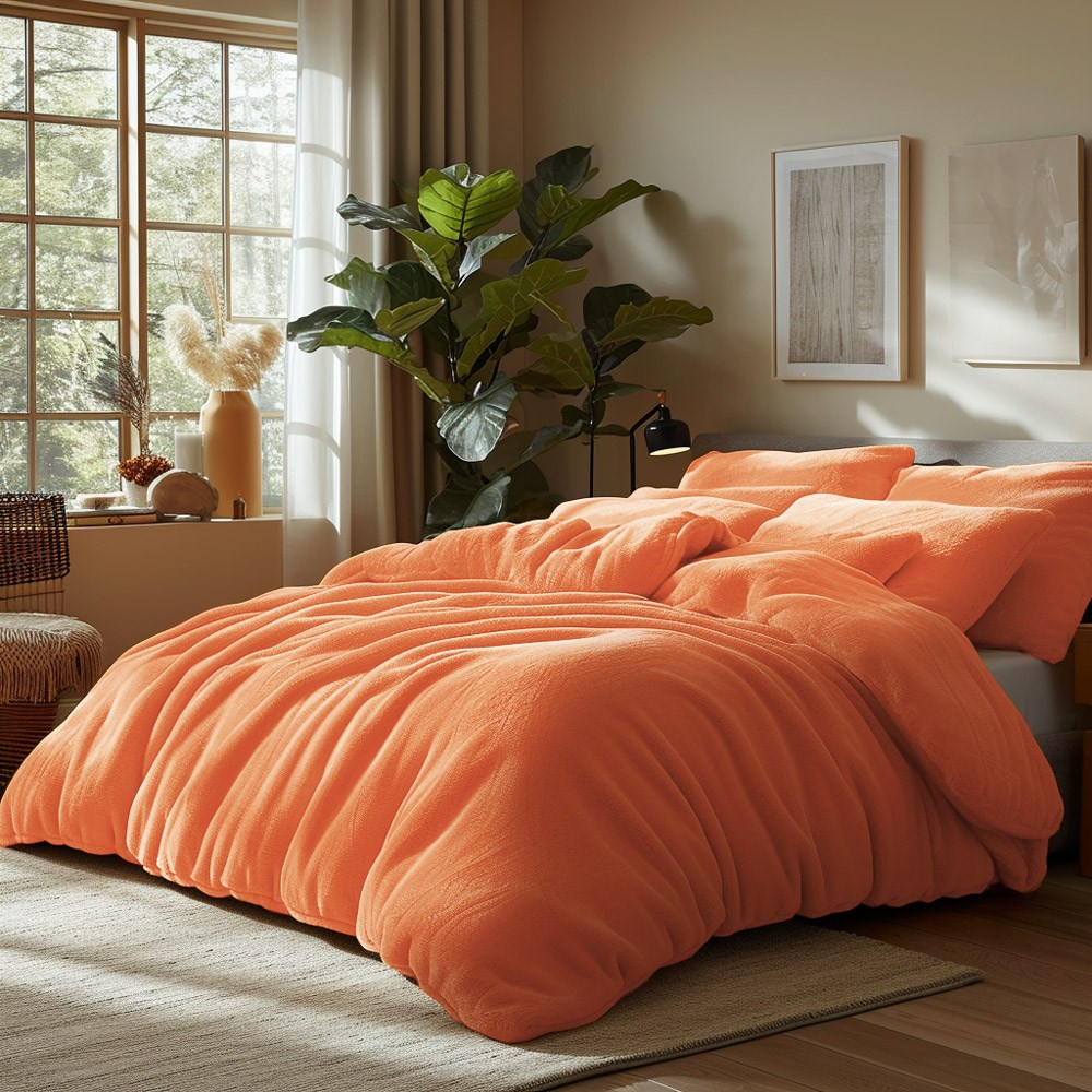 Miękka pościel frotte 155x220 cm w pomarańczowym kolorze + 1x poszewka na poduszkę 80x80 cm