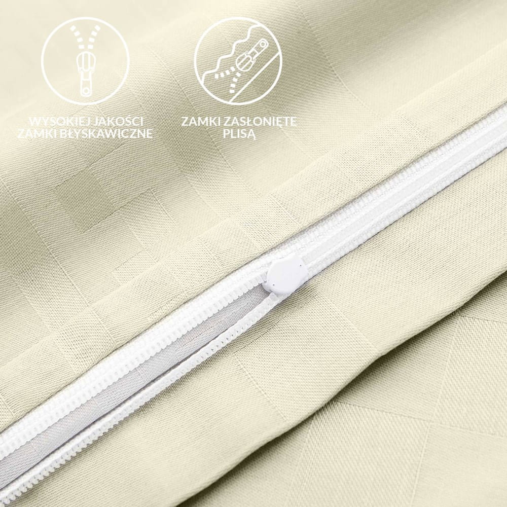Wysokiej jakości zamek błyskawiczny przykryty delikatną plisą: To rozwiązanie, które ułatwia zakładanie i zdejmowanie pościeli, jednocześnie dodając elegancji i wyrafinowania Twojej sypialni.