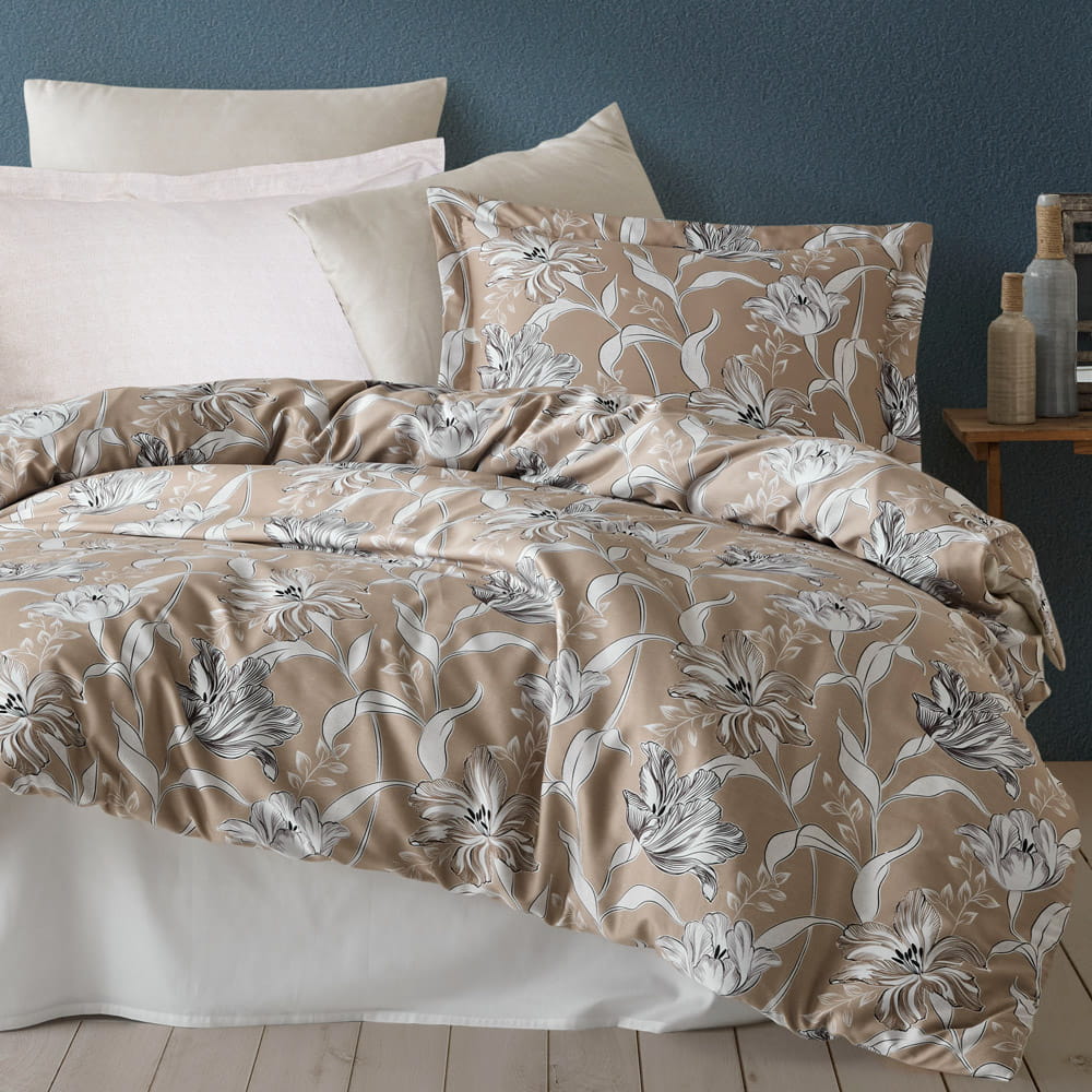 Pościel satyna bawełniana 220x200 Luxury Premium Vitale brązowa w kwiaty