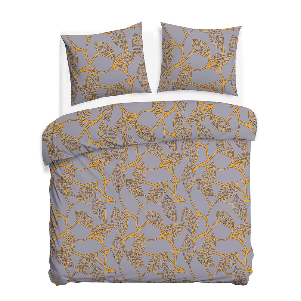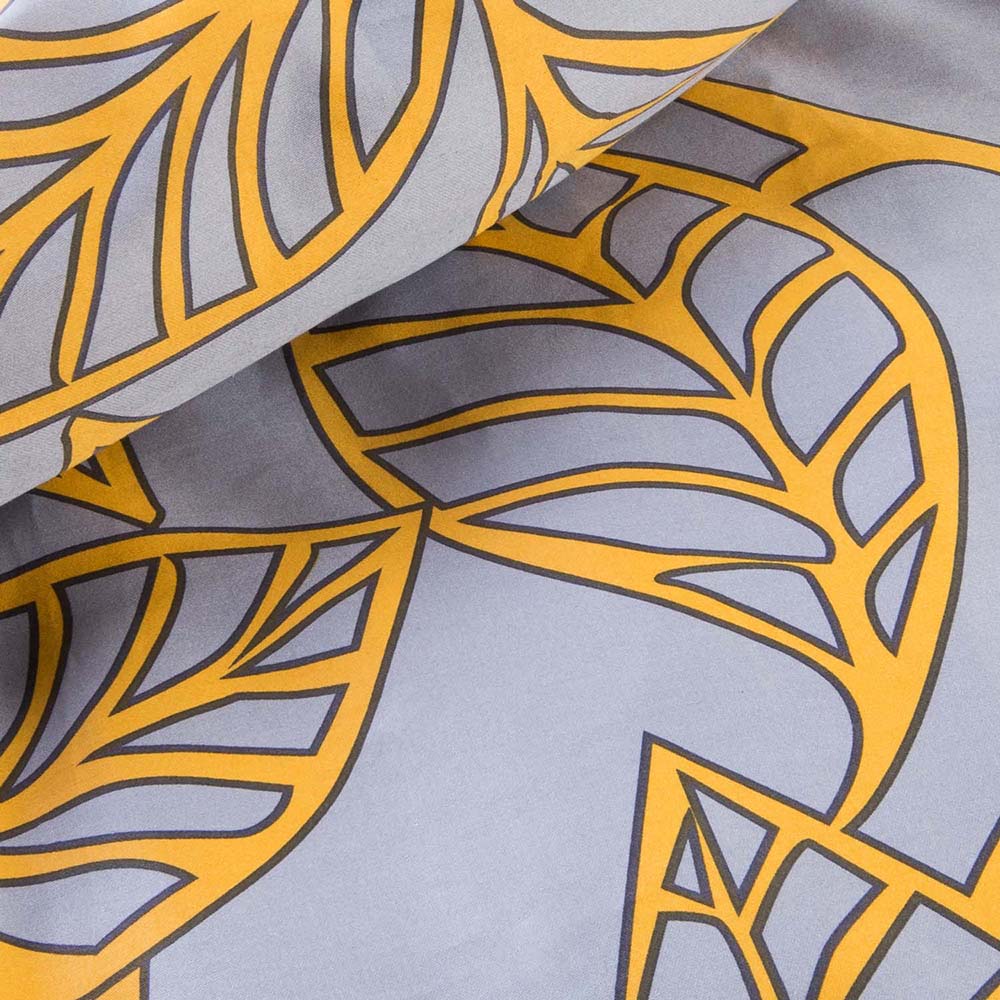 Pościel satyna bawełniana 140x200 Folina pomarańczowe liście na szarym tle, Satynlove