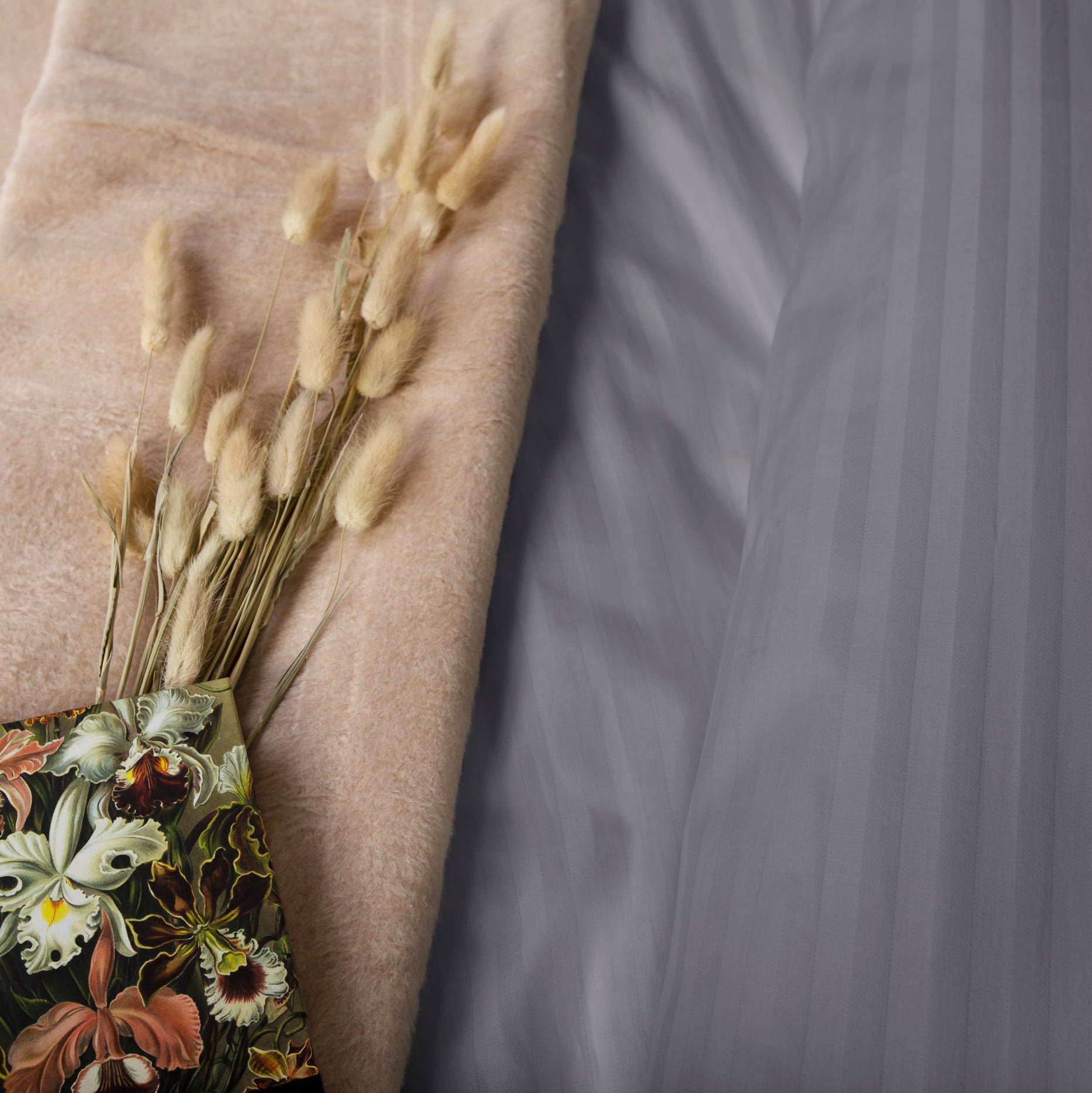 Satynowy splot w delikatne paski nadaje pościeli subtelny, luksusowy charakter, dzięki czemu materiał pięknie odbija światło i przypomina strukturą jedwab, wprowadzając do wnętrza elegancję bez nadmiernej dekoracyjności.