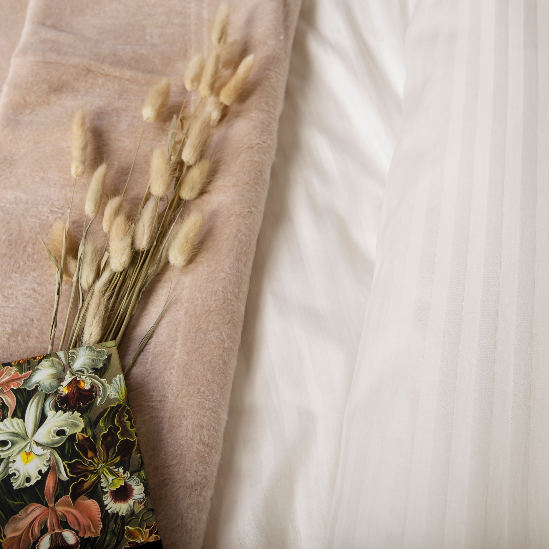 Satynowy splot w delikatne paski nadaje pościeli subtelny, luksusowy charakter, dzięki czemu materiał pięknie odbija światło i przypomina strukturą jedwab, wprowadzając do wnętrza elegancję bez nadmiernej dekoracyjności.