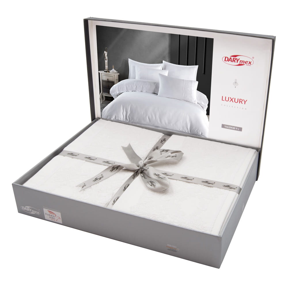 Komplet białej pościeli zapakowany został w eleganckie pudełko. Wewnątrz pościel zawiązana jest w delikatną kokardkę, która prezentuje się pięknie i dodaje ekskluzywności całości. Jest to znakomity pomysł na prezent dla bliskiej osoby, jak również na parapetówkę czy imieniny.