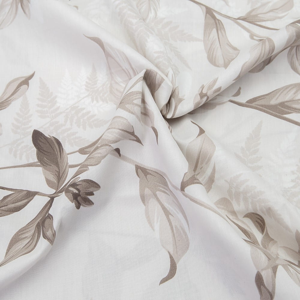 Pościel satyna bawełniana 160x200 Exclusive Dream biała w szaro beżowe liście