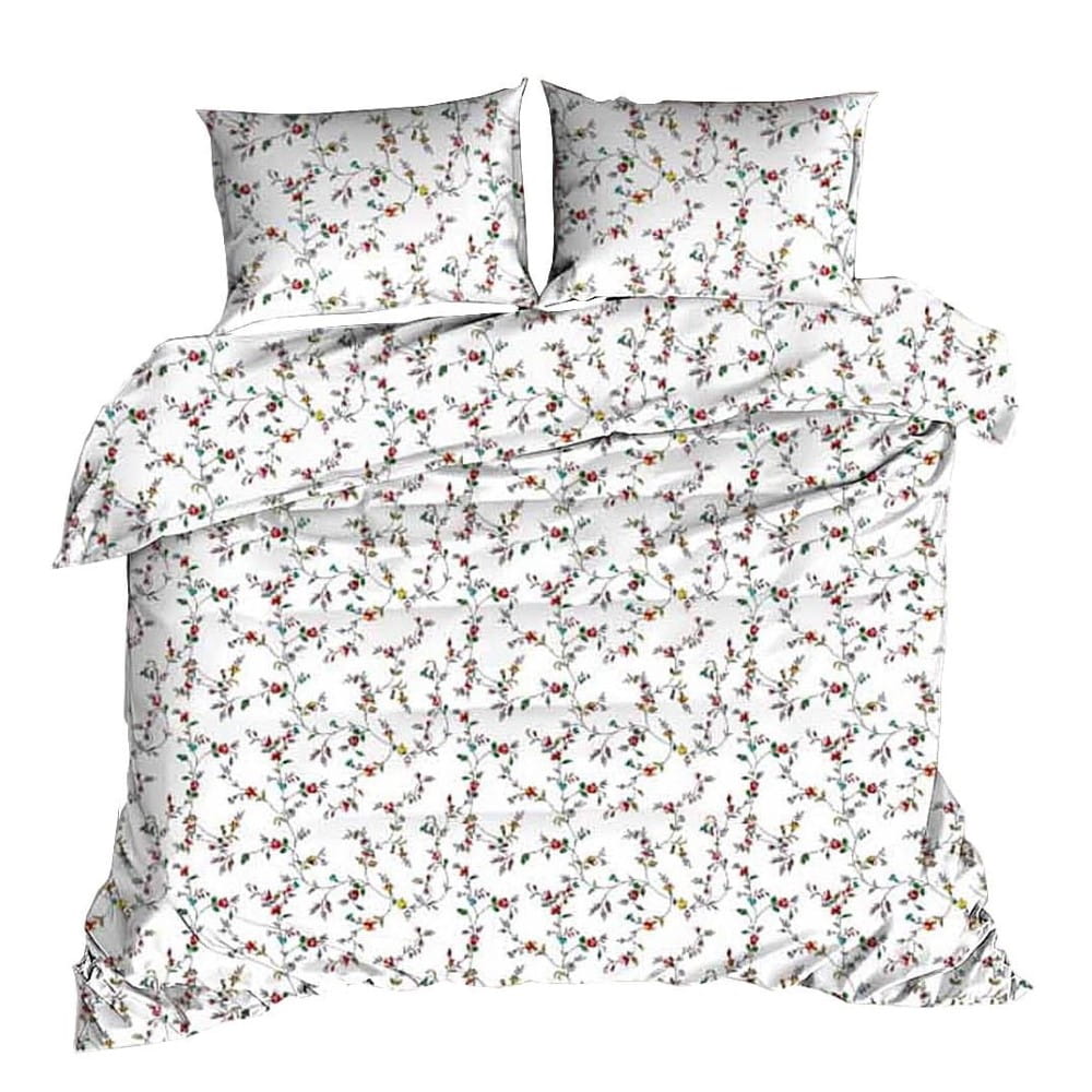 Delikatna kobieca śliczna biała pościel z kory 140x200 cm we wzorzyste kolorowe kwiaty
