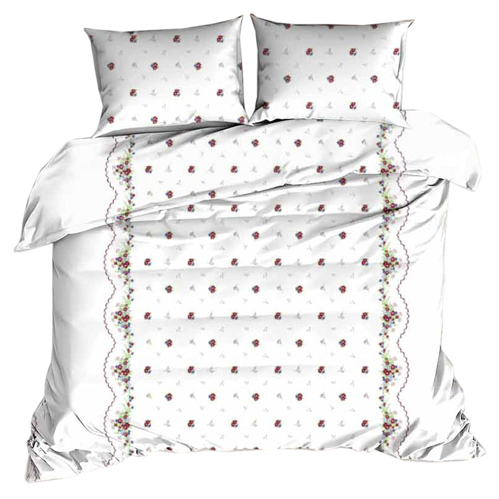 Miękka i delikatna w dotyku pościel z kory biała w delikatne kwiaty w rozmiarze 140x200 cm