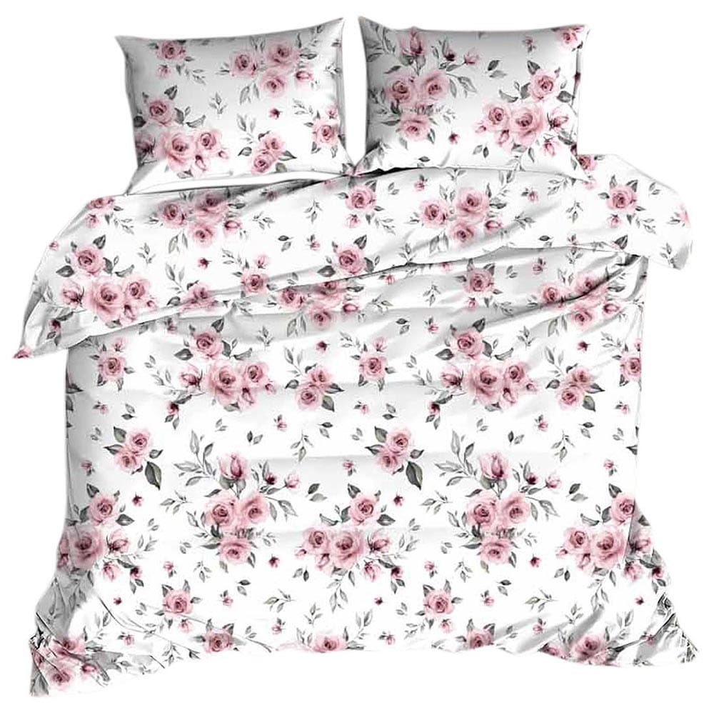 Delikatna, piękna, biała pościel z kory w liliowe róże w rozmiarze 160x200 cm