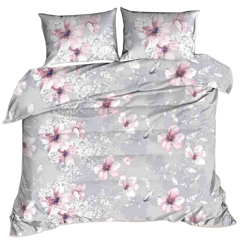 Miękka delikatna bawełniana szara pościel w kwiaty 160x200 cm