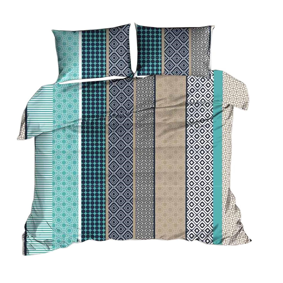 Pościel w beżowo turkusowe wzorzyste pasy, wspaniale udekoruje Twoją sypialnie. Doskonale sprawdzi się w nowoczesnej sypialni i doda jej dekoracyjnego charakteru.