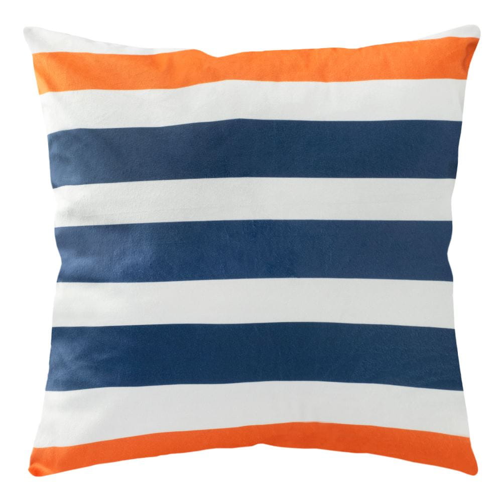 Dekoracyjna welwetowa poszewka w pomarańczowo-niebieskie pasy 43x43 cm