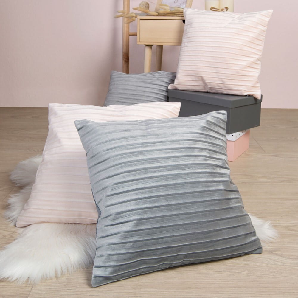Elegancka popielata dwustronna poszewka dekoracyjna 40x40 cm w paski
