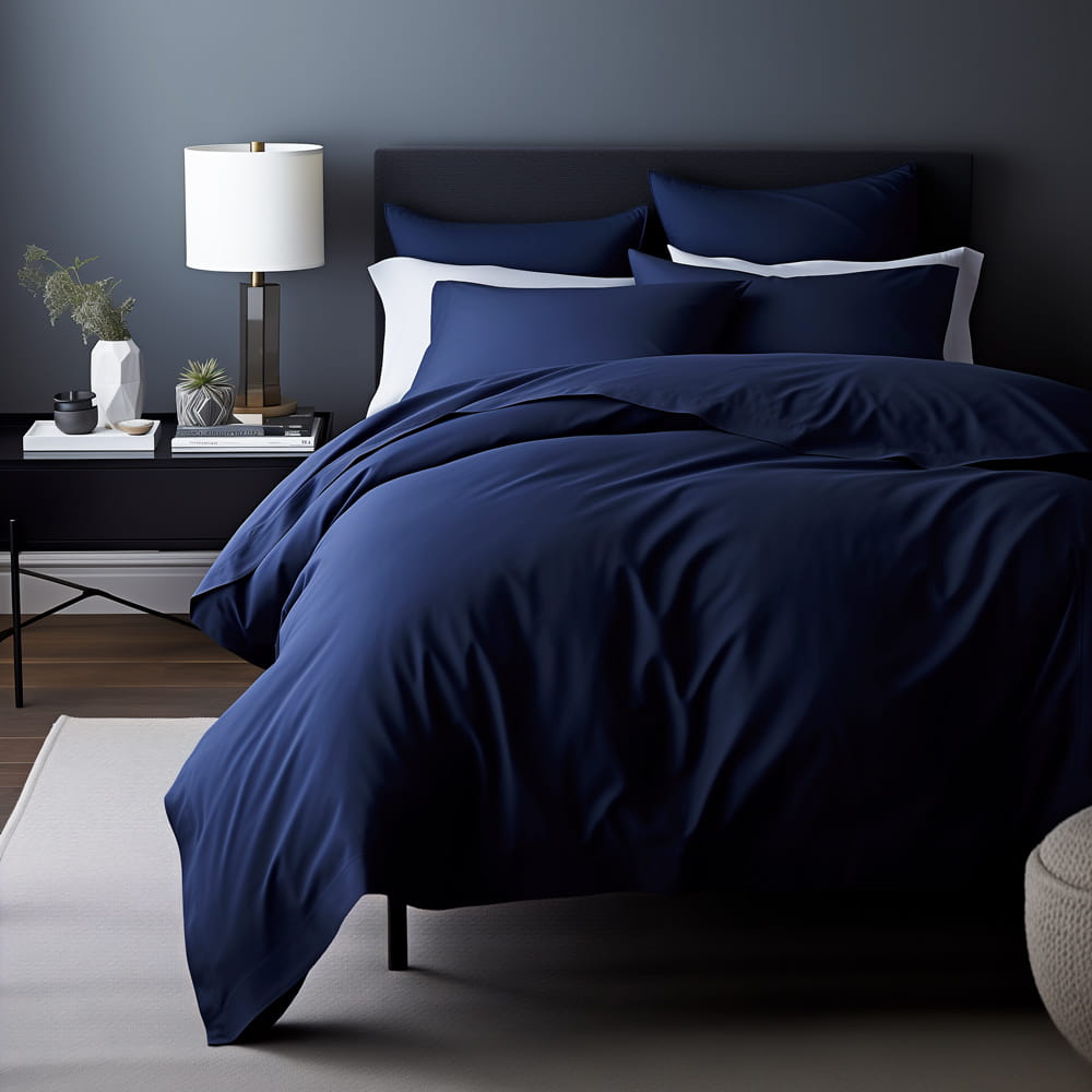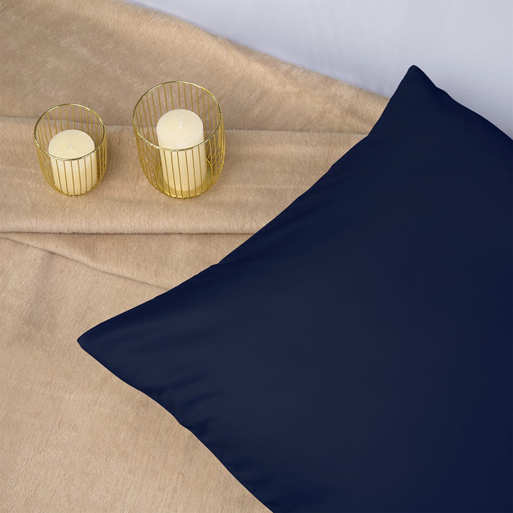 Kolor ciemno granatowy tworzy spójną i elegancką aranżację sypialni, a jednobarwna forma sprawia, że poszewka doskonale komponuje się z kompletem pościeli z tej samej kolekcji lub innymi tekstyliami.