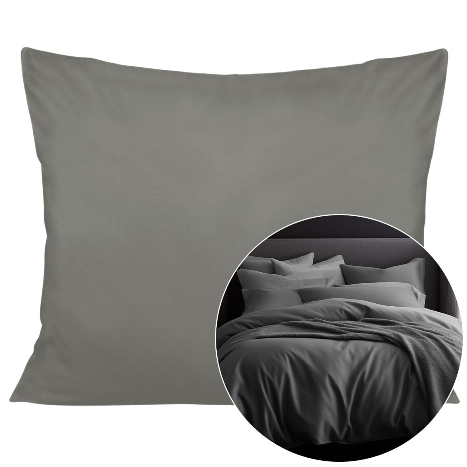 Kolor szary tworzy spójną i elegancką aranżację sypialni, a jednobarwna forma sprawia, że poszewka doskonale komponuje się z kompletem pościeli z tej samej kolekcji lub innymi tekstyliami.