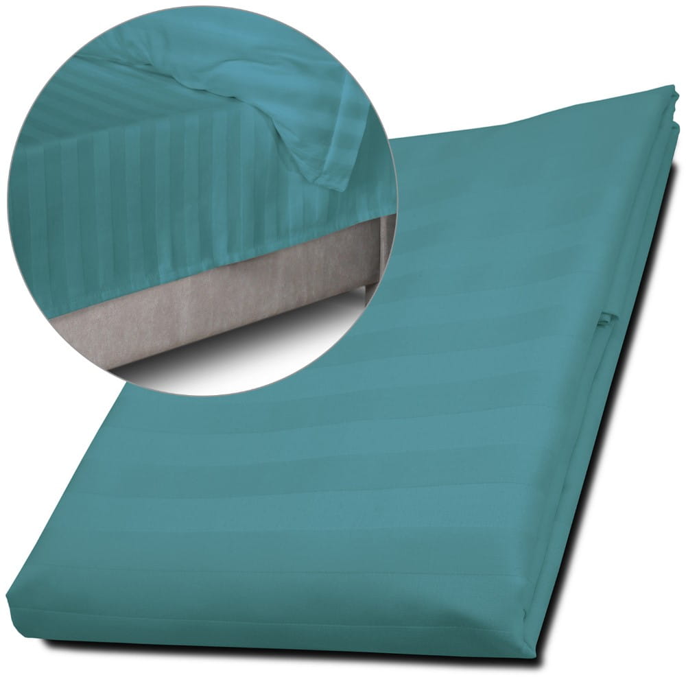 Prześcieradło bambusowe satyna bawełniana 220x260 Bamboo paski, turkusowe