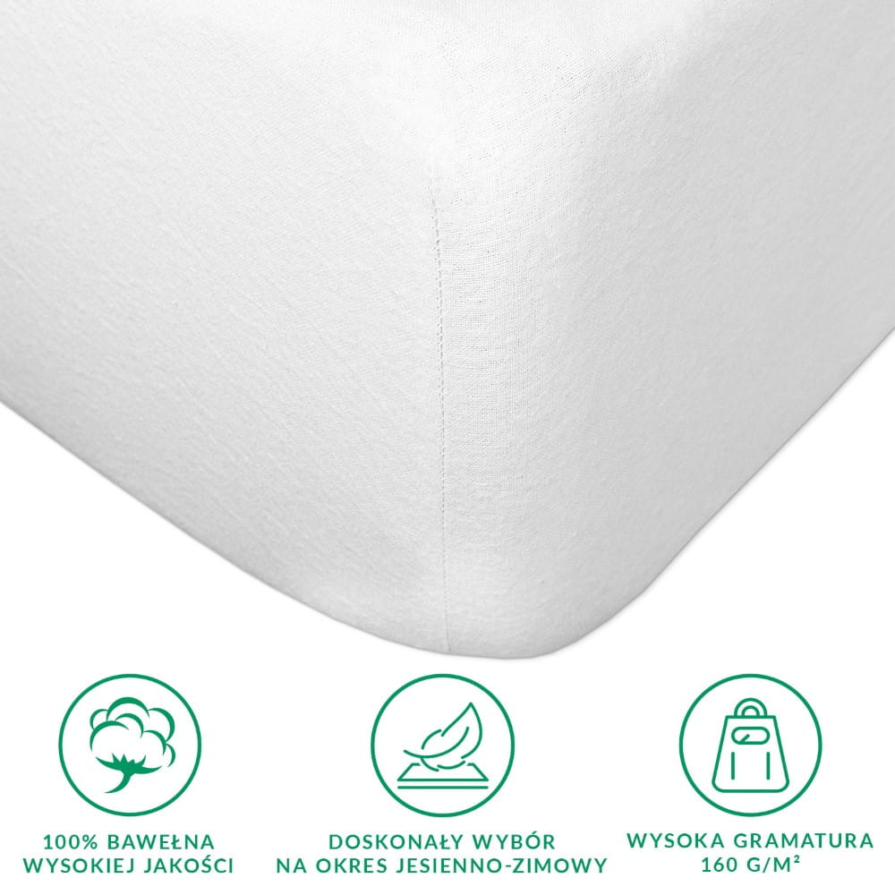 Prześcieradło flanelowe z gumką 180x200 kolor biały 160g/m2