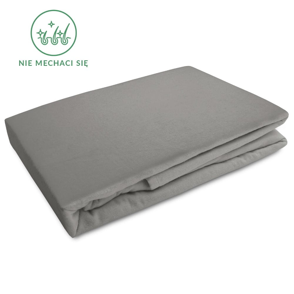Delikatne przyjemne w dotyku wytrzymałe szare prześcieradło flanelowe z gumką 160x200 cm